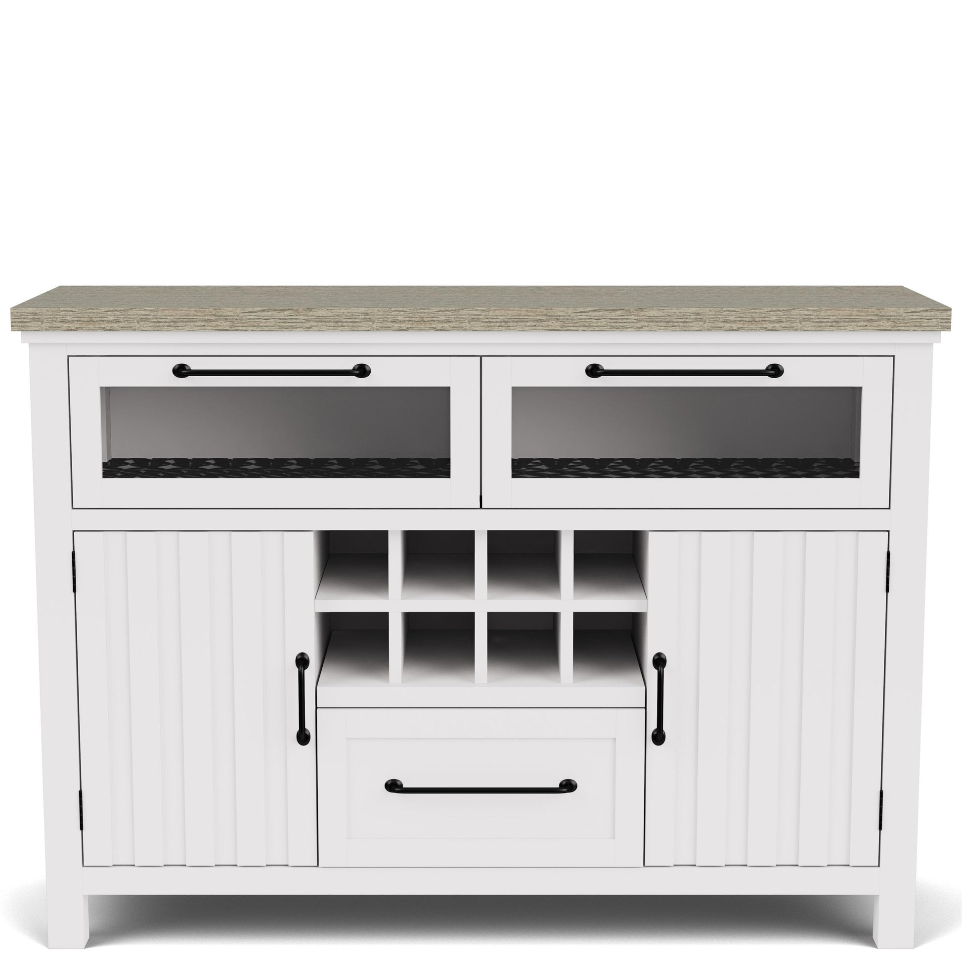 - Board and batten design on doors with an adjustable shelf behind