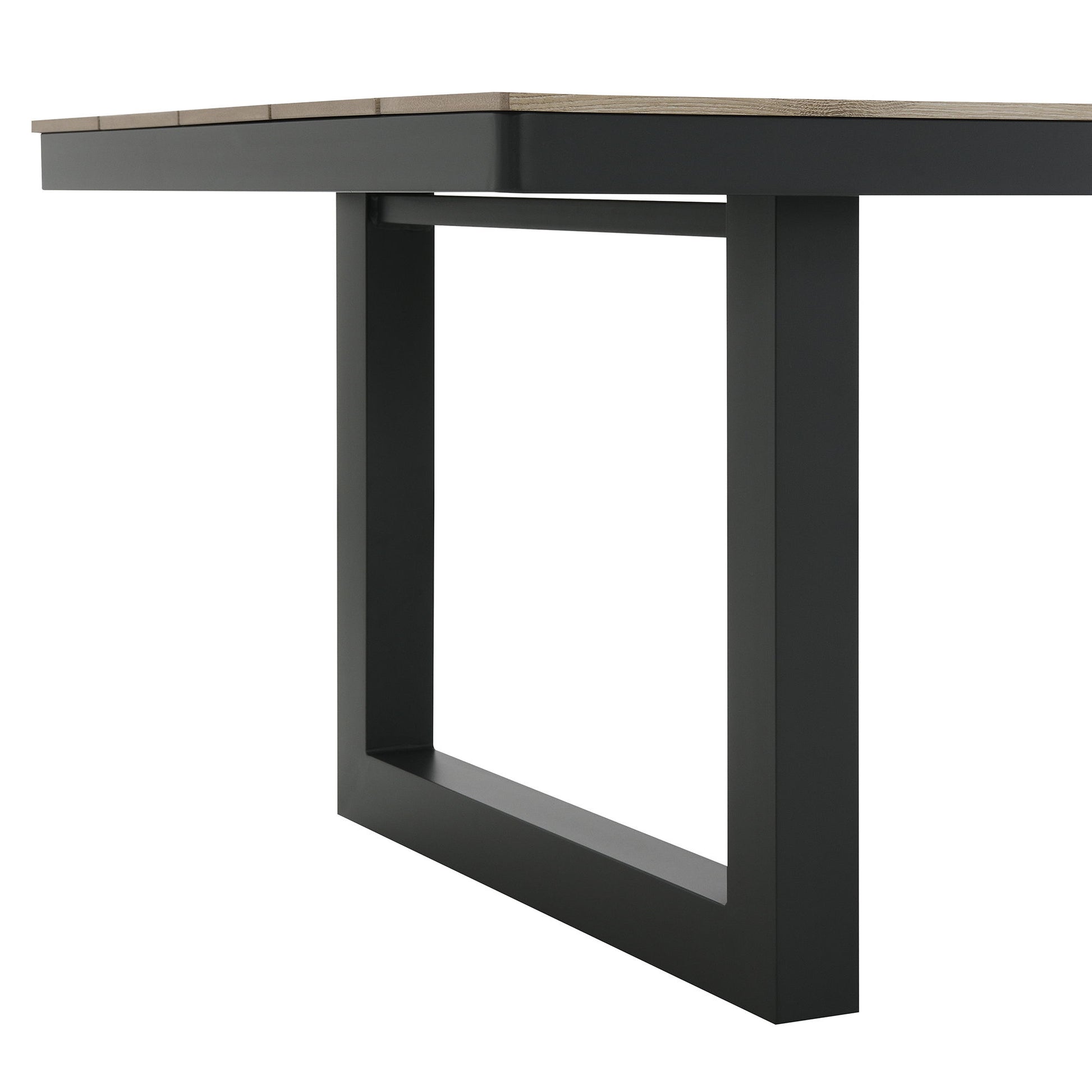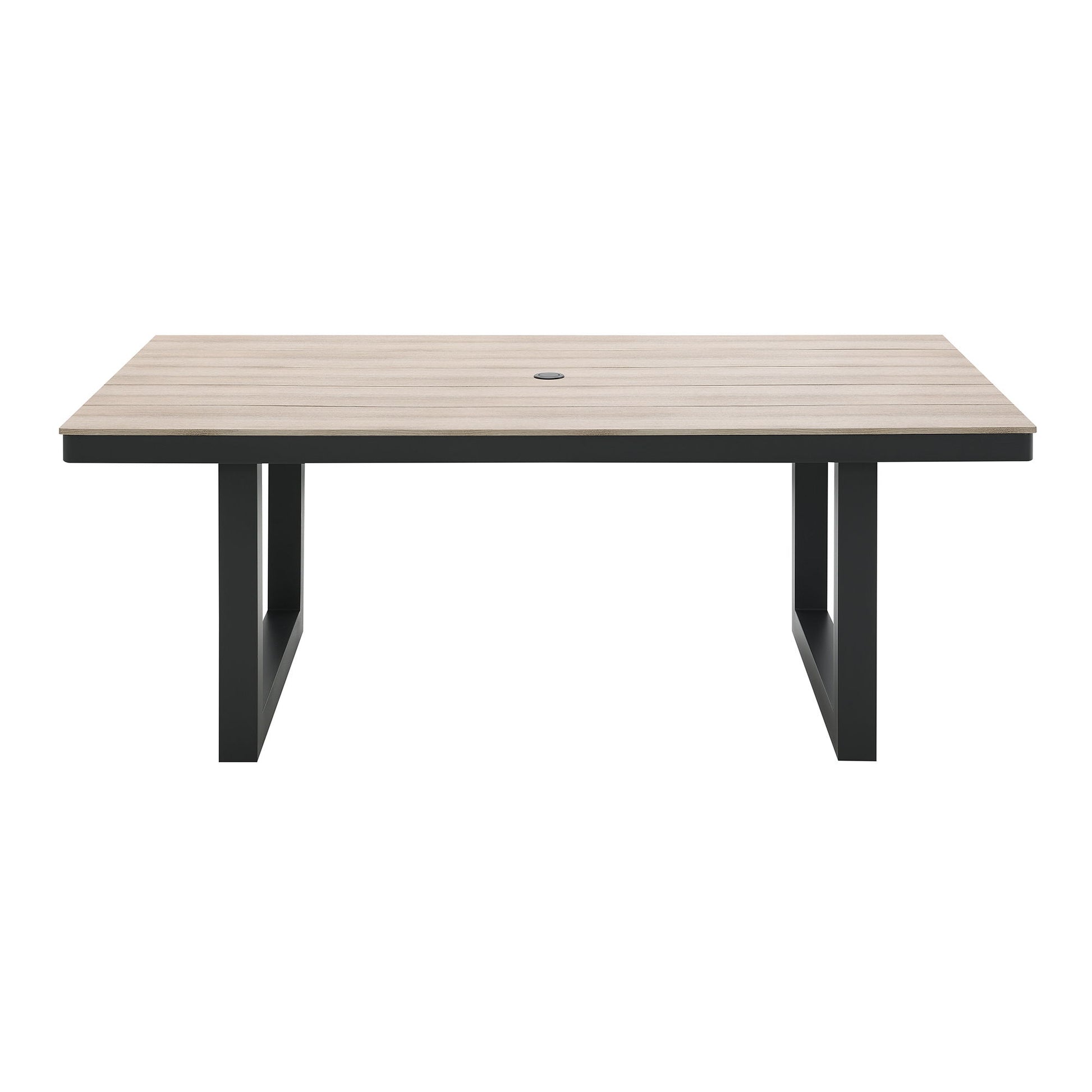 Upgrade your outdoor space with the Costa Patio Dining Table. Crafted with all-weather rust-free aluminum, this piece is built to withstand the elements and maintain its sleek appearance for years to come. The high-density polywood features a stylish two-tone design, adding a contemporary touch to your patio decor. It includes an umbrella hole with a cap cover for added convenience perfect for hosting outdoor gatherings and designed to make entertaining a breeze. Enjoy endless summer nights in style with the Costa Patio Dining Table.
