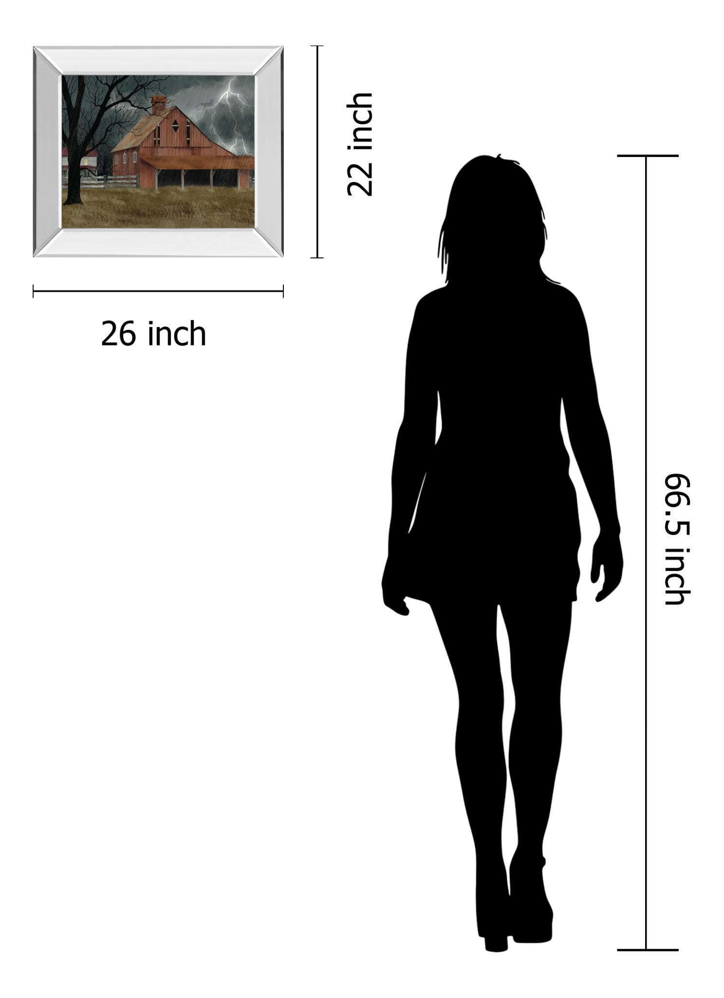 - Framed in a midnight aura colored frame this artist captures the sense of the storm with movement of rain and the powerful lightening above the barn. This piece is very dramatic and that is what you want when you introduce wall art into your space.
