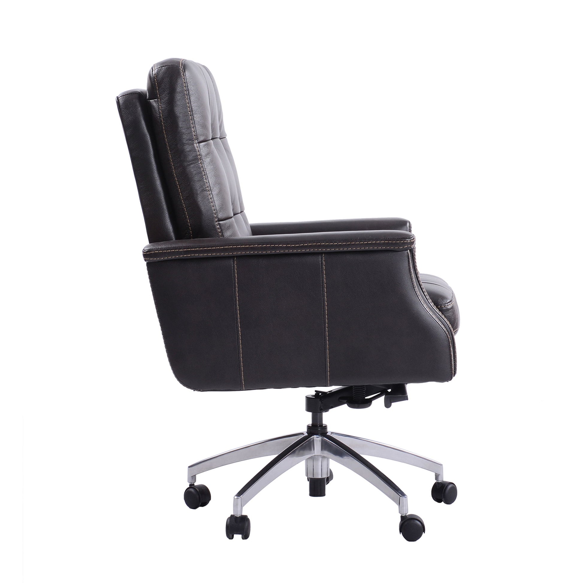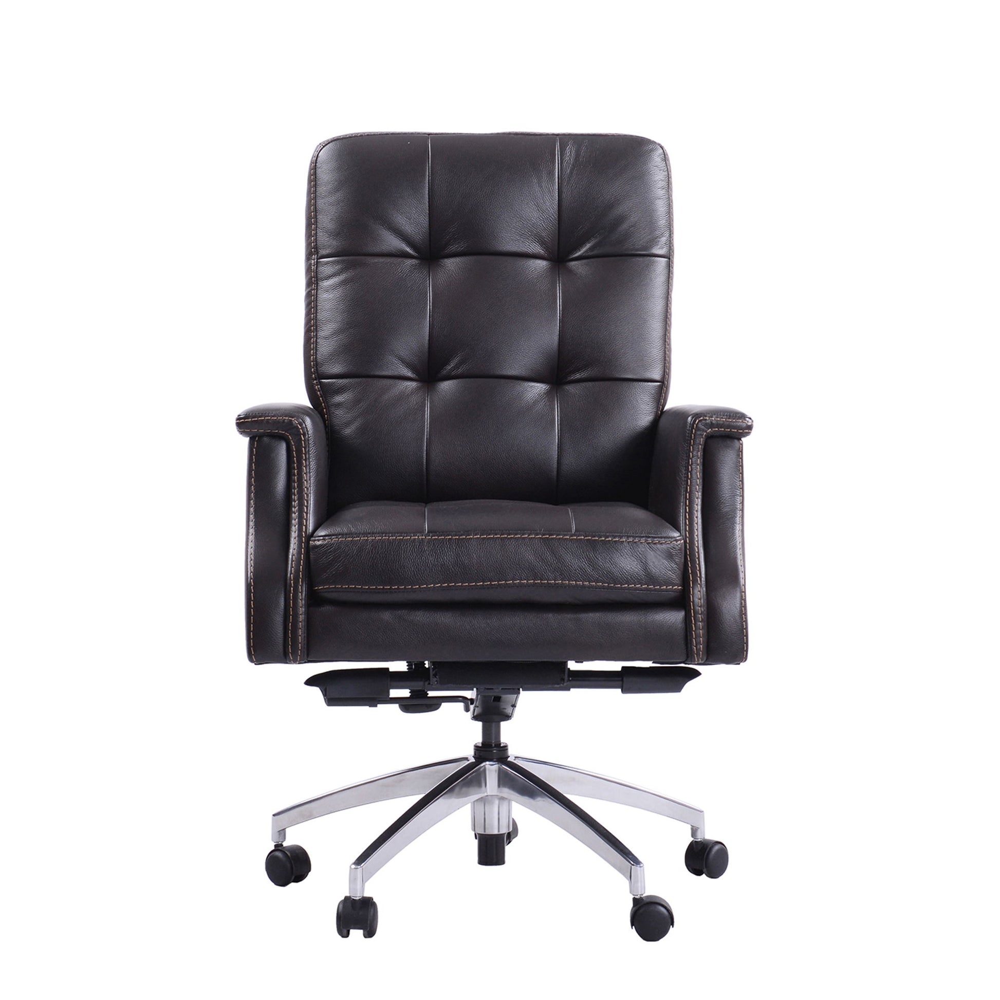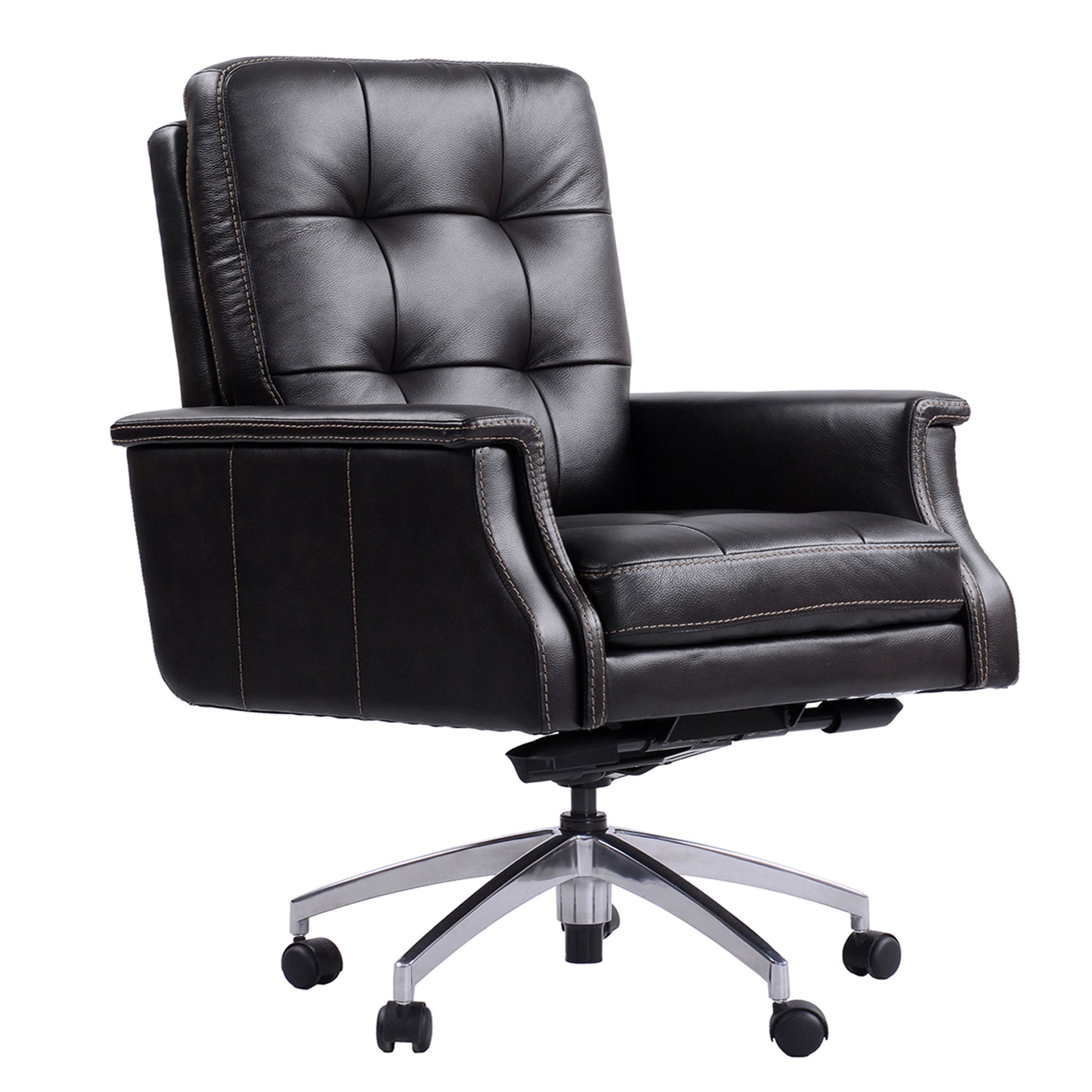 Add fashion and function to your workspace with the timeless style of this desk chair. Crafted in a Top Grain Leather, it features a five-wheel castered base that ensures mobility while its innovative design delivers unsurpassed comfort and versatility. No matter what you’re working on, the task will feel easier with the support of this multifunctional chair.