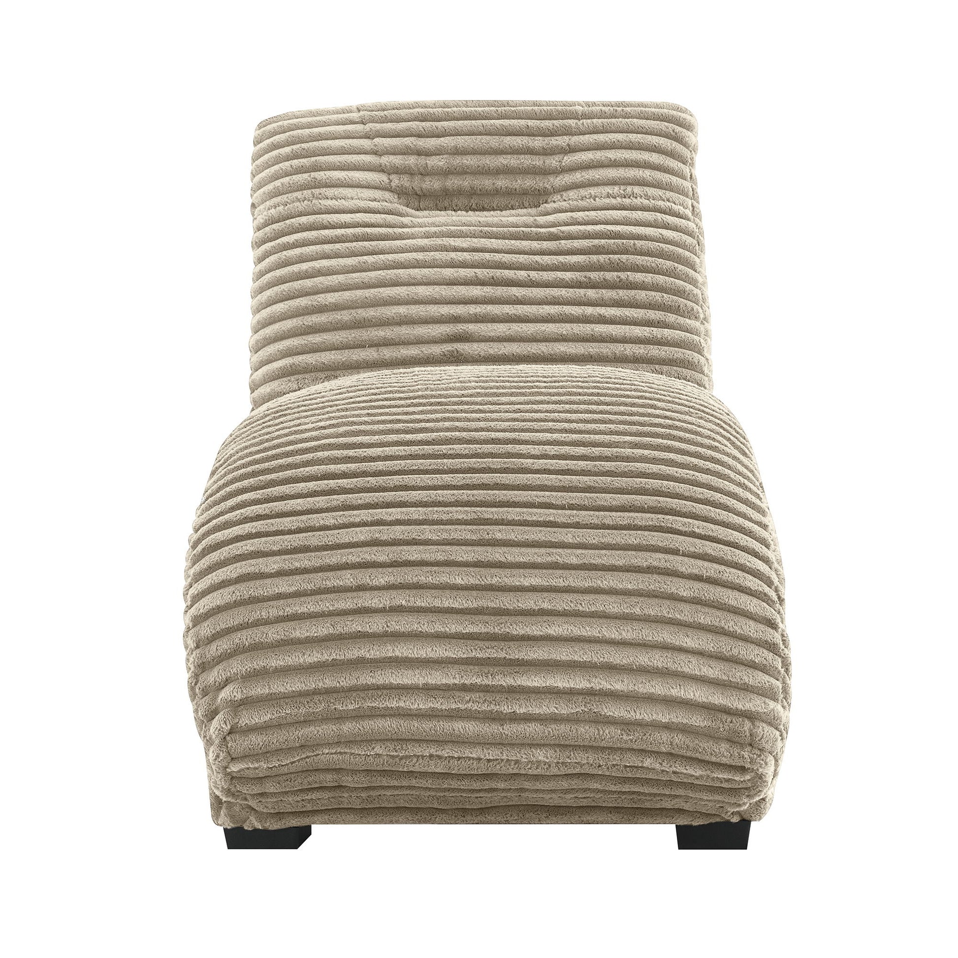 Add a touch of elegance to your living space with the Dominick II Chaise. This piece features horizontal channeling throughout, creating a sleek and sophisticated look. The solid and manufactured wood frame ensures durability, while the foam and spring seating provide comfort and support. The soft, textured upholstery adds a luxurious feel to this chaise, making it the perfect spot to relax and unwind after a long day. Whether used for lounging or as a stylish accent piece, the Dominick II Chaise is sure to impress.