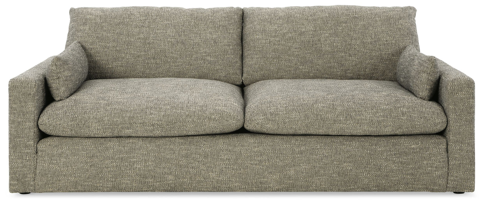 On the days when rest and relaxation seem out of reach, this sofa provides a positively plush seating experience. Its feather-fiber blend cushions invite you to float away in complete comfort. Striking granite-hued upholstery and a streamlined frame grant this cozy piece a look well-suited to contemporary spaces.