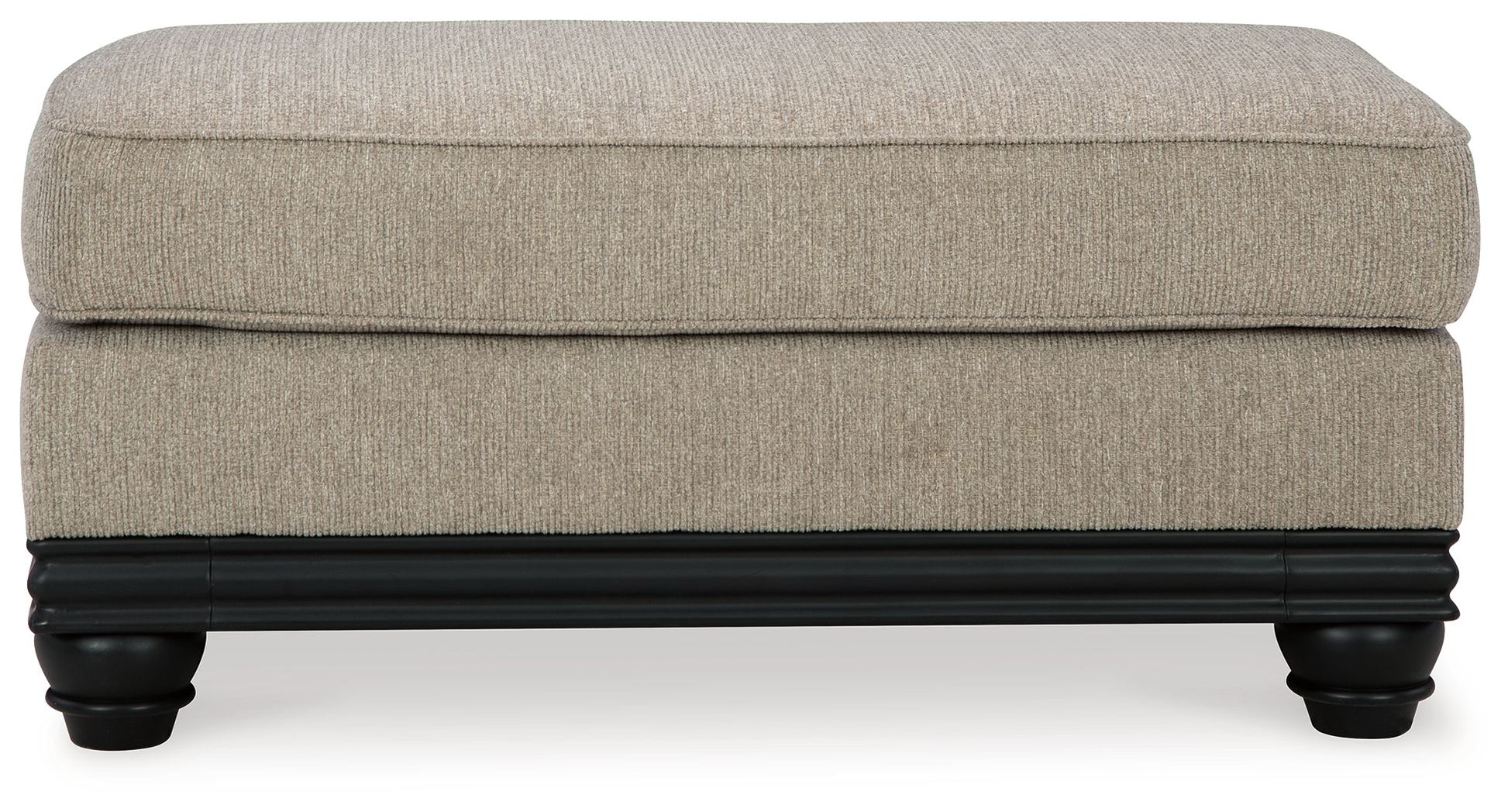 This ottoman suits those searching for a fresh take on versatile style, seamlessly transitioning from casual to modern with your decor. Its flexible character comes courtesy of a chunky fabric. Matte black wood trim creates innovative contrast. A virtuoso of form and function, this ottoman is a superb addition to your simply sophisticated seating arrangement.