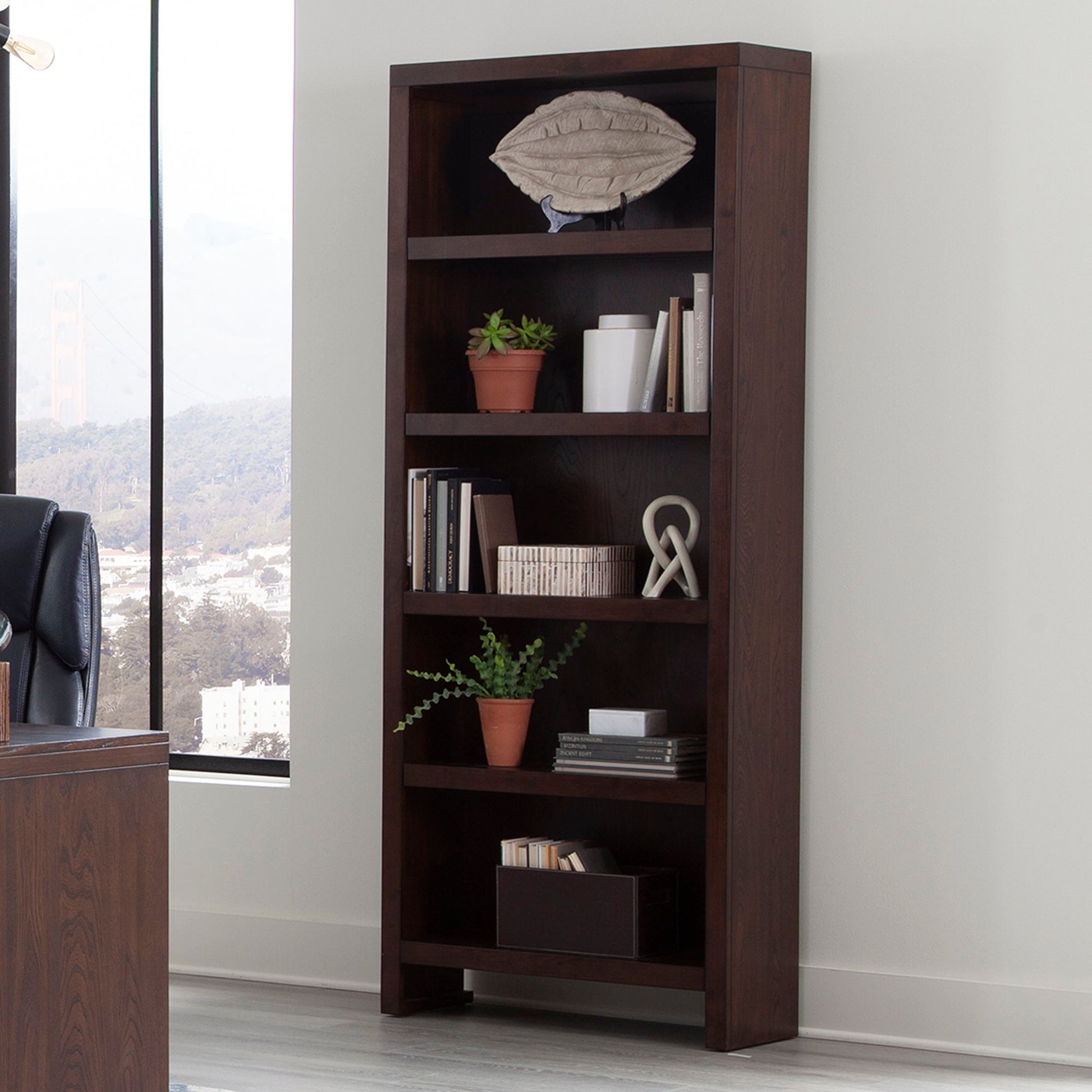 - Streamlined silhouette allows bookcase to bunch together beautifully
