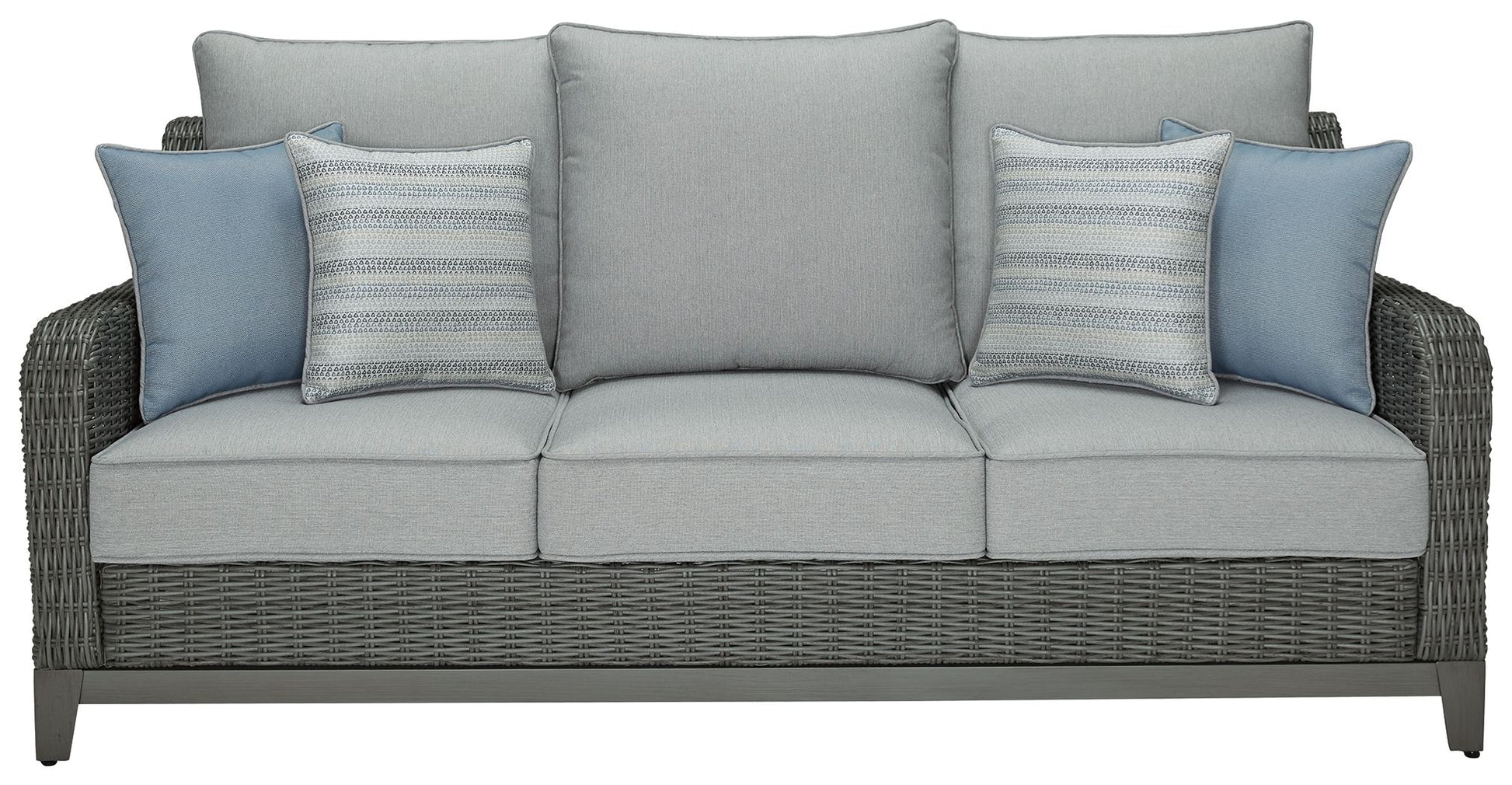 Add a distinguished touch of gray to your outdoor living space with this sofa. It's made with resin wicker over an aluminum frame for a relaxed look that provides seasons of enjoyment. Rest assured, the thick seat and back cushions are wrapped in Nuvella® high-performance fabric that’s fade-resistant, stain-resistant and a breeze to clean.