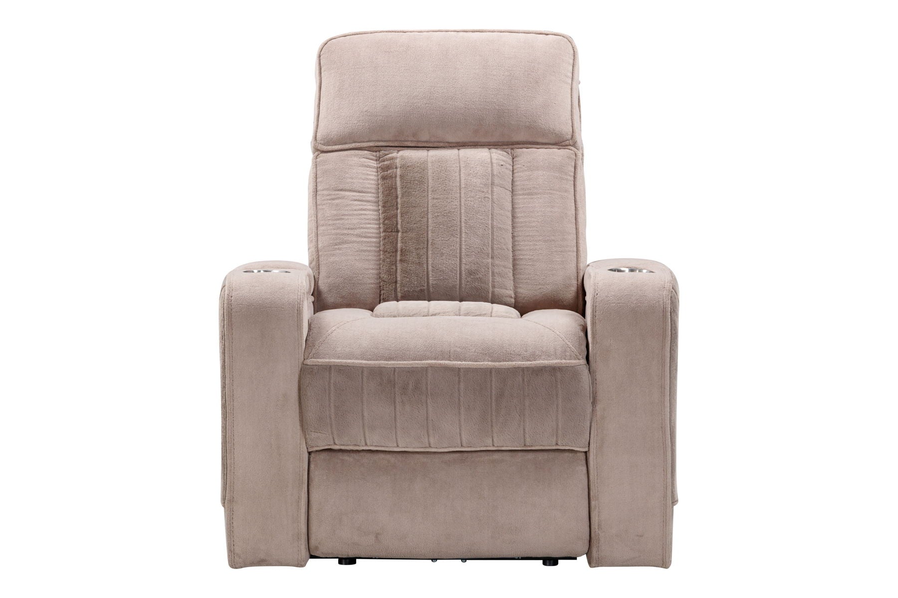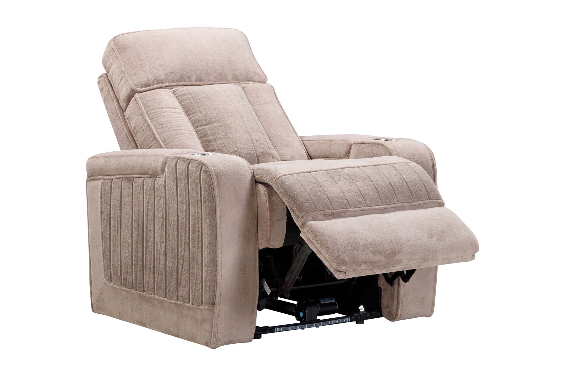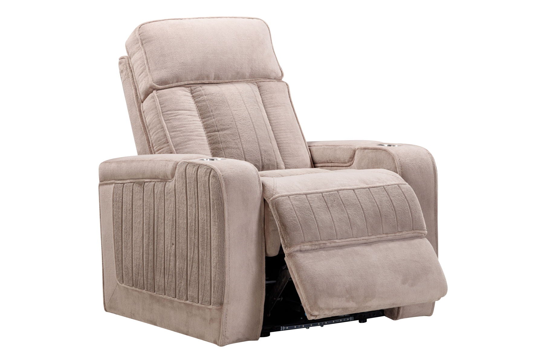 Spice up your movie nights with the Equinox Power Recliner. This reclining seat also features armrest storage and an independently operating power headrest for personalized comfort. Cool ambient floor light at the base, upholstered channels on the back and leg rests and oversized welt cord ensure that Equinox is the best looking seat in the house!