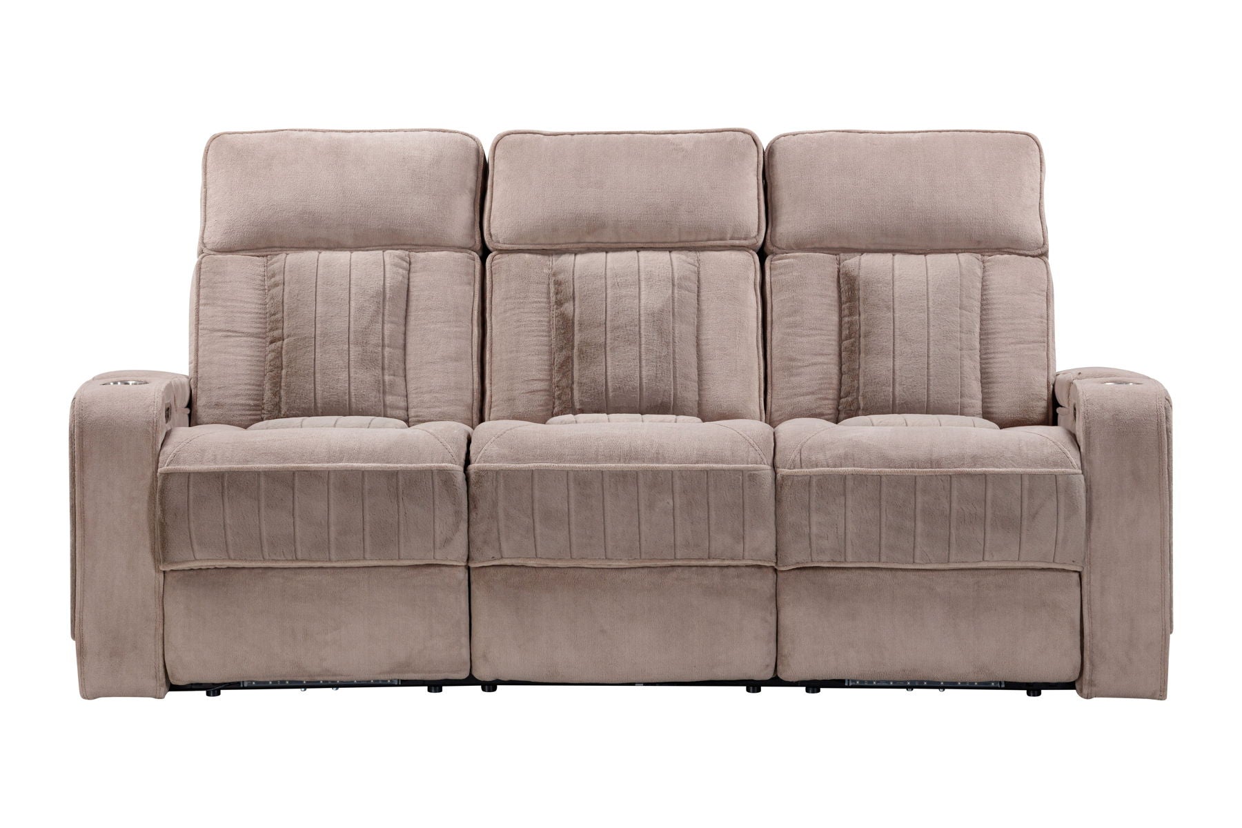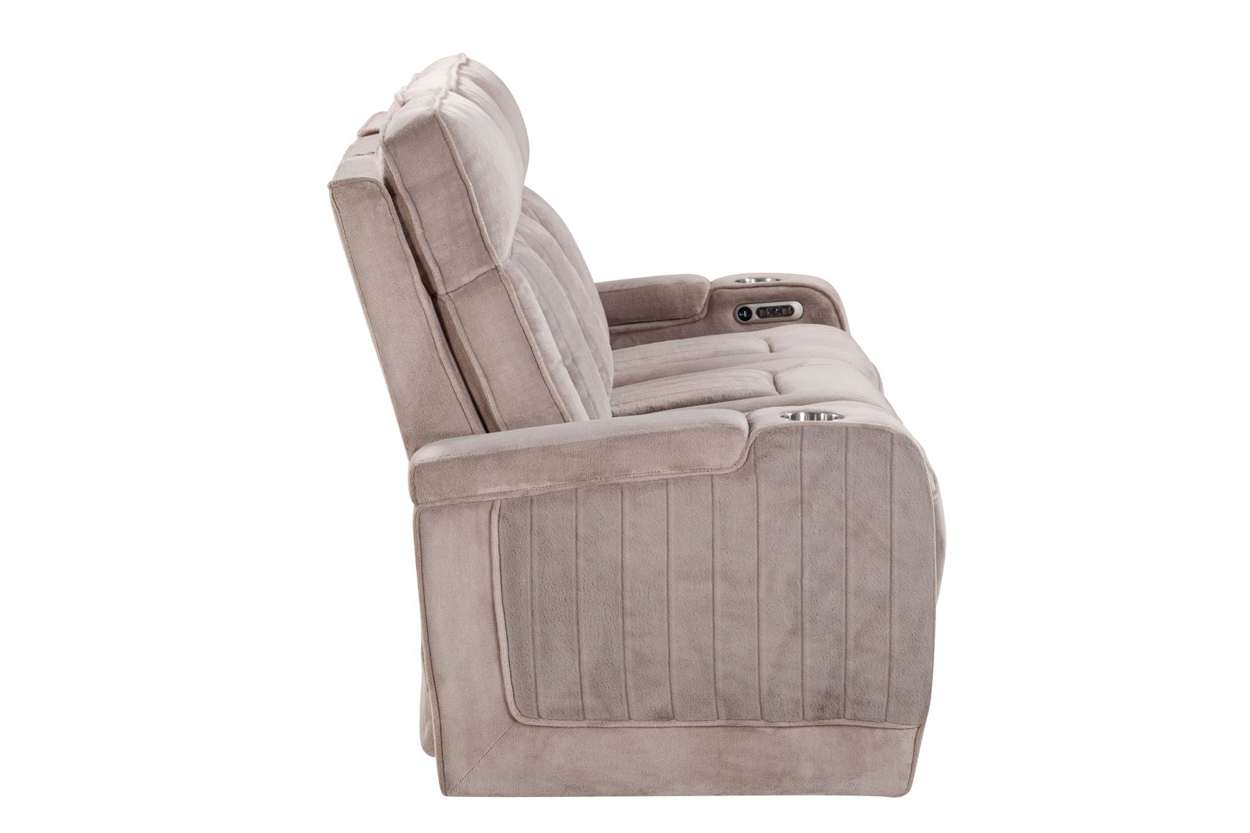 Equinox - Power Reclining Sofa With Drop Down Table - Mushroom
