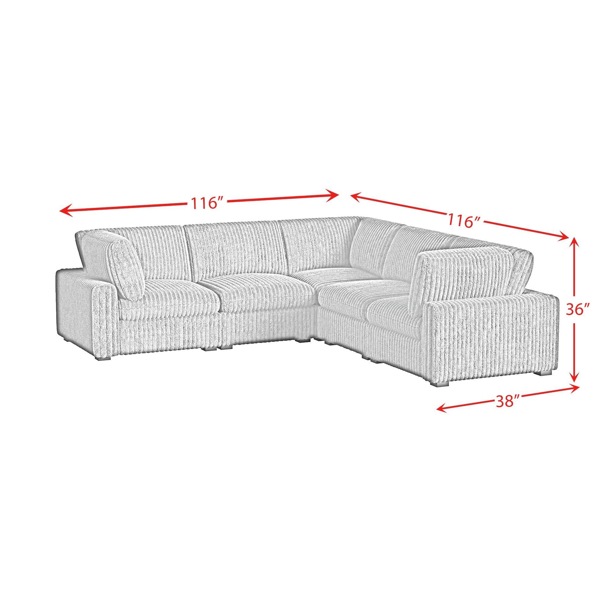 Lounge in the welcoming repose of the Esprit 5-Piece Modular Set, where comfort and style unite. Dressed in rich, textured fabric, this set offers a cozy corner for relaxation and intimate gatherings alike. Each piece of this modular group is crafted to comfort you in softness, fostering leisure with a modern flair. With its deep seating and plush, ribbed upholstery, this sectional becomes the heart of your home. Let the elegance and comfort of the Esprit 5-Piece Modular Set turn your living space into your favorite place to decompress.