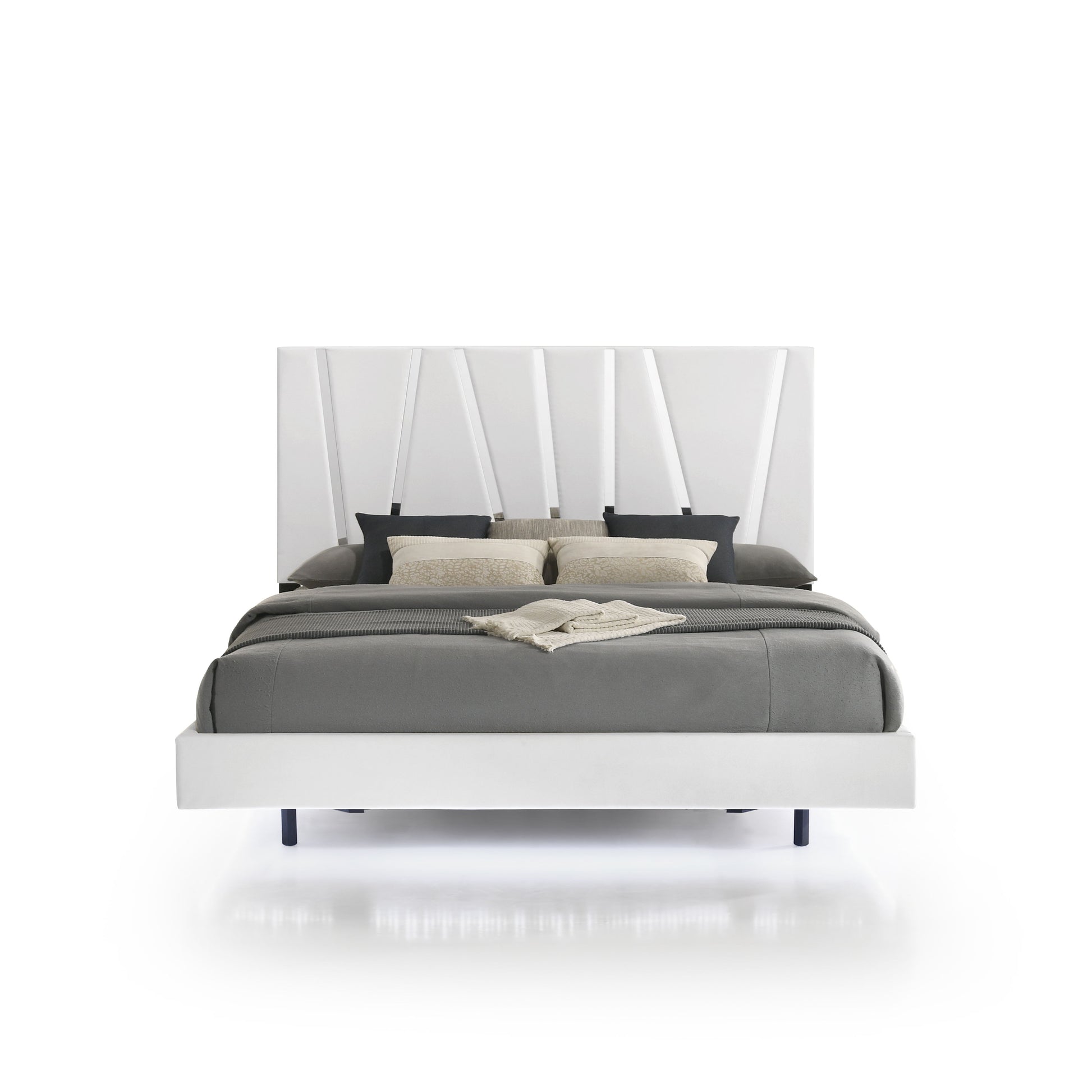 The Europa Panel Bed offers a perfect blend of modern elegance and quality craftsmanship. This set includes a panel headboard, footboard, two side rails, and four mattress support slats. Its sleek design is achieved with a majestic headboard, glossy finish, and modern mylar accents, creating a sophisticated look. The eco-friendly manufactured woods are assembled with durability in mind, finished with a glossy topcoat and padded upholstery for added comfort. Upscale extras include soft blue base lighting that reflects off the silver mylar bases, casting an ambient glow. This bed is the ideal choice for those seeking a luxurious and contemporary centerpiece for their bedroom.