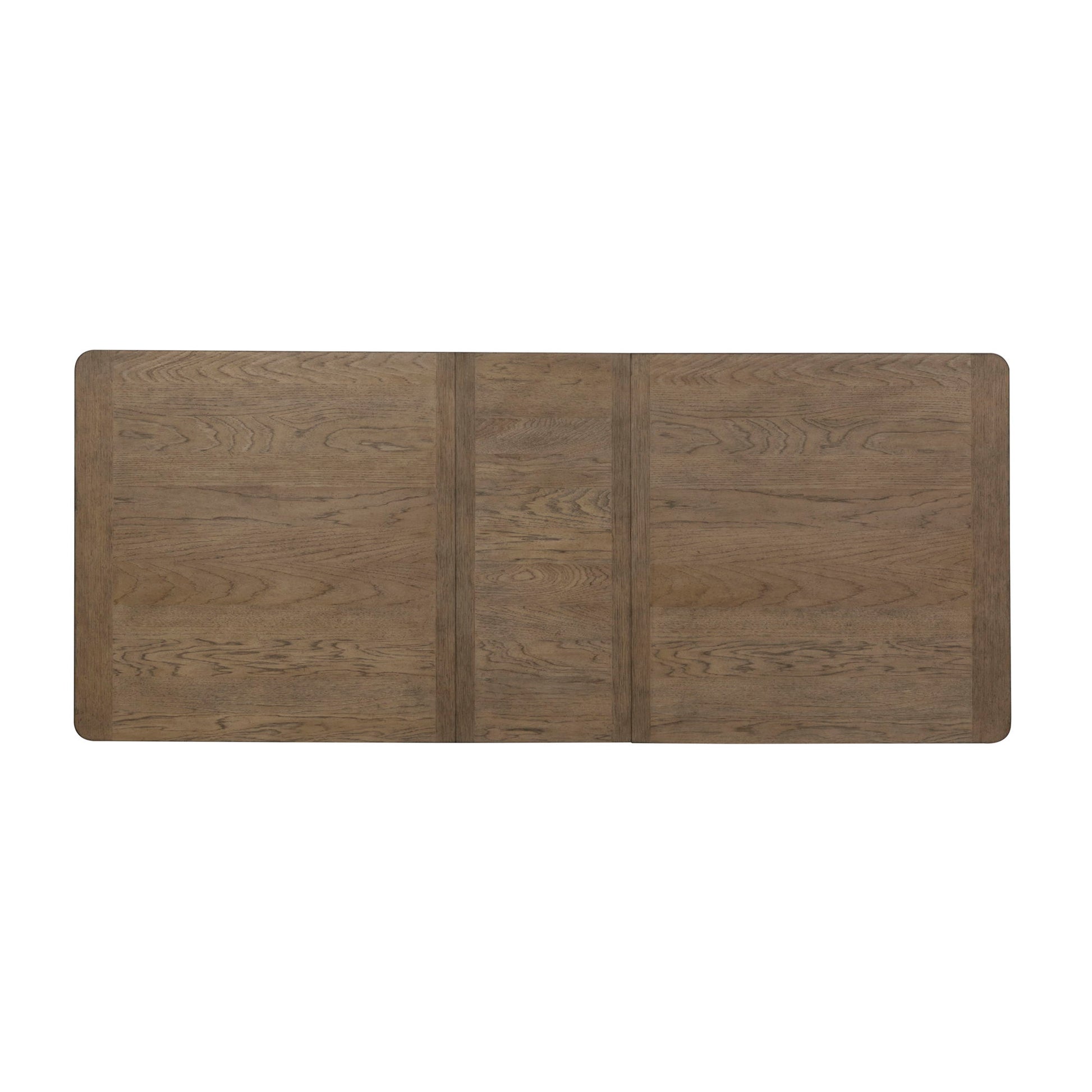 Give your dining room an aged cottage look with the Farmhouse Reimagined Trestle Table. This versatile design is easily paired with various chair types, featuring pine solids with a hickory veneer top. Its heavily distressed finish is all purpose and favorable to any space, as it includes a removeable leaf.