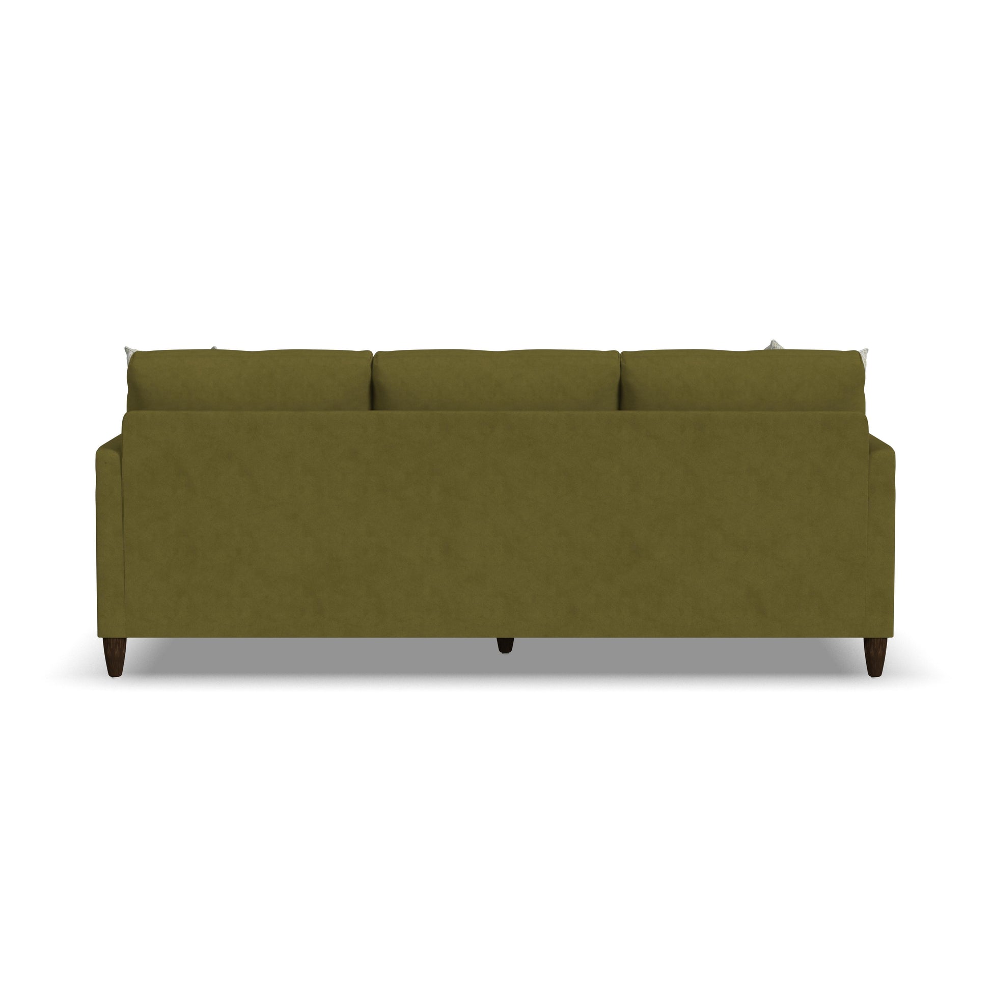 Sweet and Architectural. Clean lines and a cantilevered front make the Fern sofa a welcome addition to any home. With generous seating space from arm to arm, Fern provides plenty of roomy comfort for lounging, relaxing and entertaining. Round tapered legs positioned directly under the narrow track arms offer a distinctively modern architectural feel to spaces. Loose back cushions with a casual pleat design and the included knife-edge accent pillows complete the on-trend look of Fern.