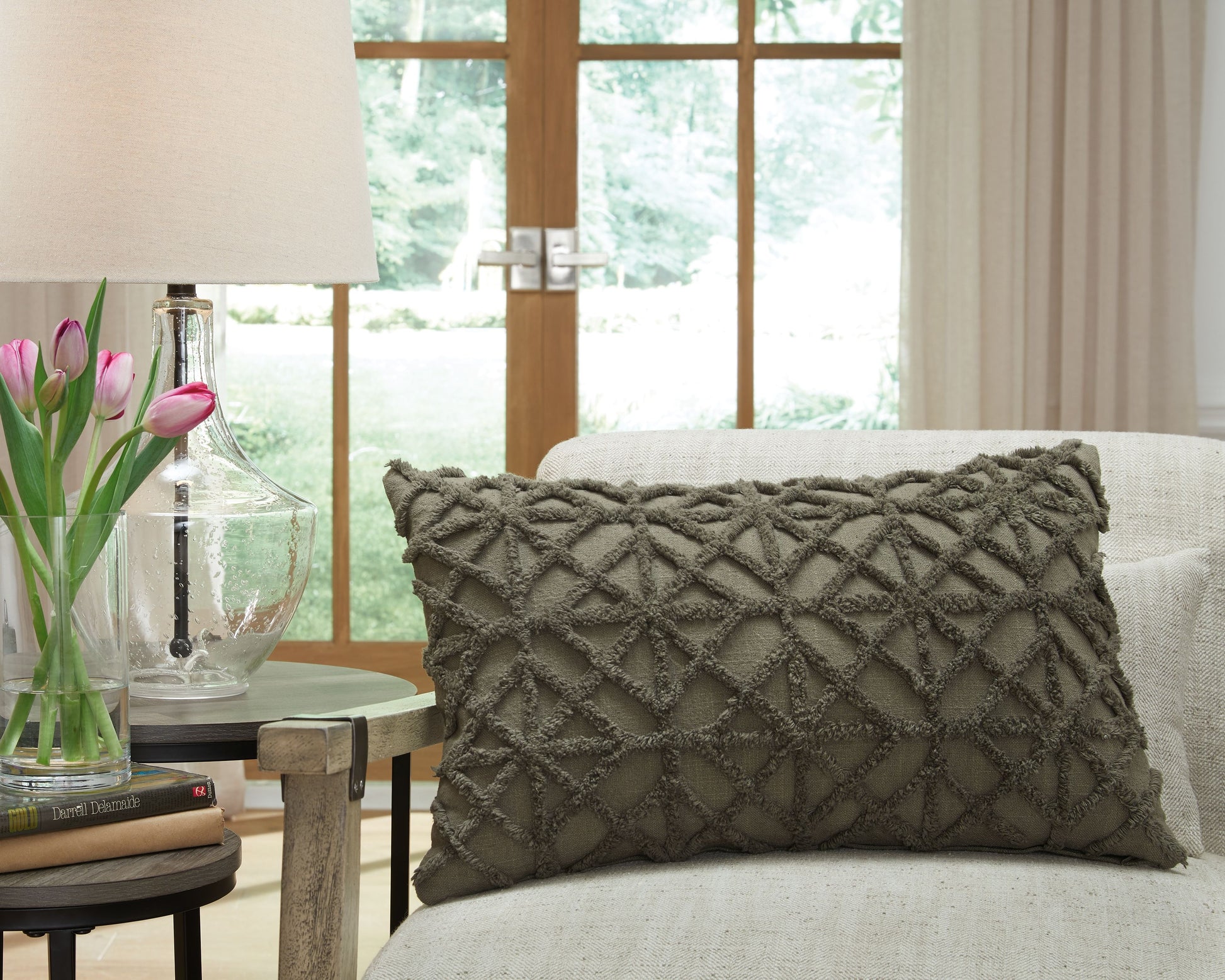 A chic take on texture. This pillow pops with a diamond tufted pattern, channeling the symmetry of art deco motifs for your casual lifestyle.