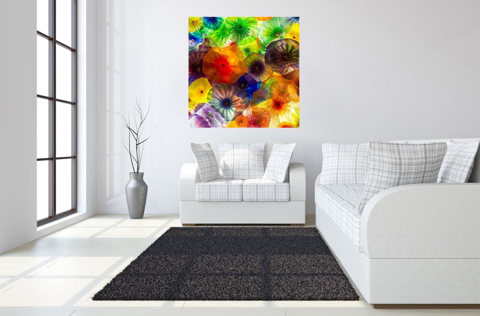 Beautiful sploches of glassy color, with a very playful style. Tempered or toughened glass is a type of safety glass processed by controlled thermal or chemical treatments to increase its strength compared with normal glass. The high-resolution artwork behind hit, coupled with elements of foil will mezmerize your guests. It is incredibly vibrant and alone will add a dramatic affect to your room. We overbox these large 40x60 pieces of art so it will arrive saftely to your home or office. We also have added special hanging hardware, exclusive to Classy Art, to the back to make haning this pice quick and easy.