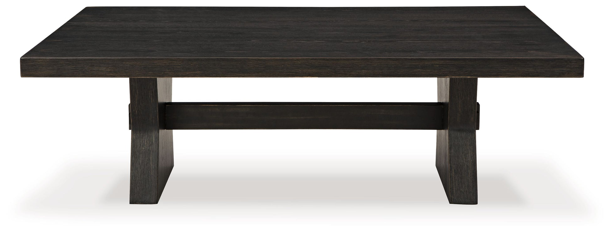 This coffee table brings a rustic vibe to urban contemporary design. It’s a modern approach to natural beauty, with an aged black finish defining a thick top. And the stunning simplicity of its color palette allows you to seamlessly coordinate this table with your existing decor.