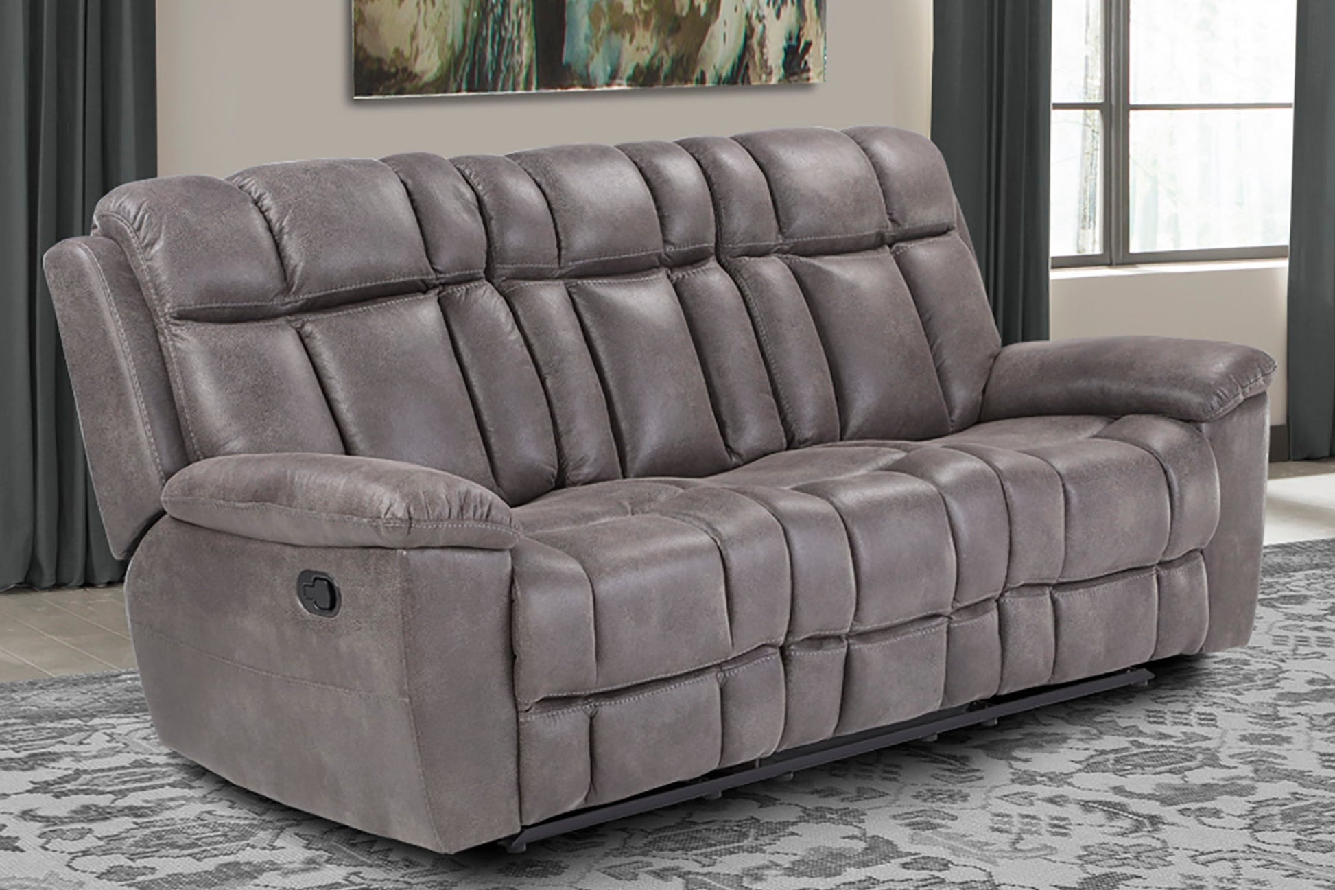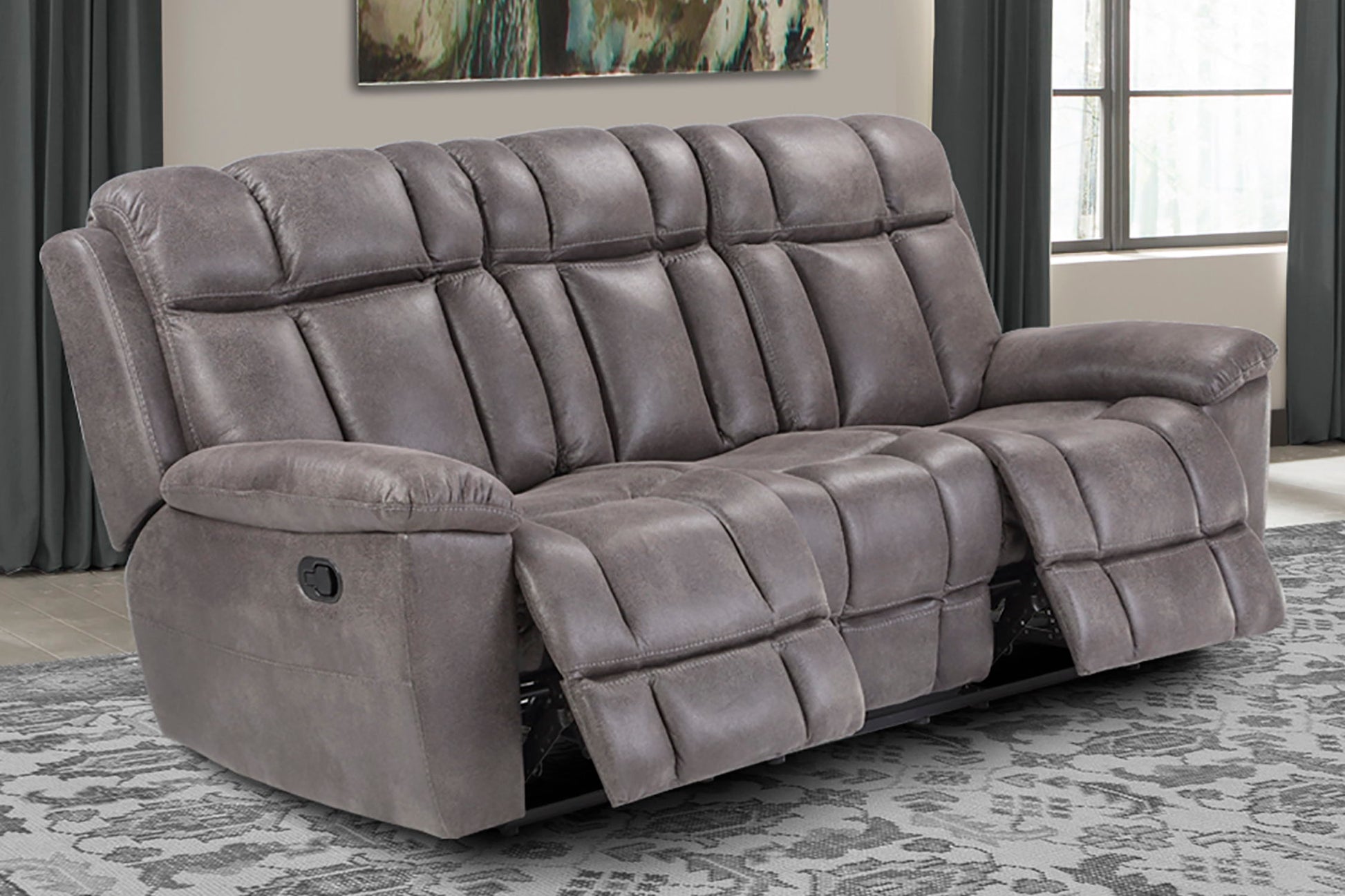The Goliath manual reclining sofa recliner in Arizona Grey will impress you with its beauty and comfort. It's just the place to sit back, put your feet up, and get ready for the weekend.