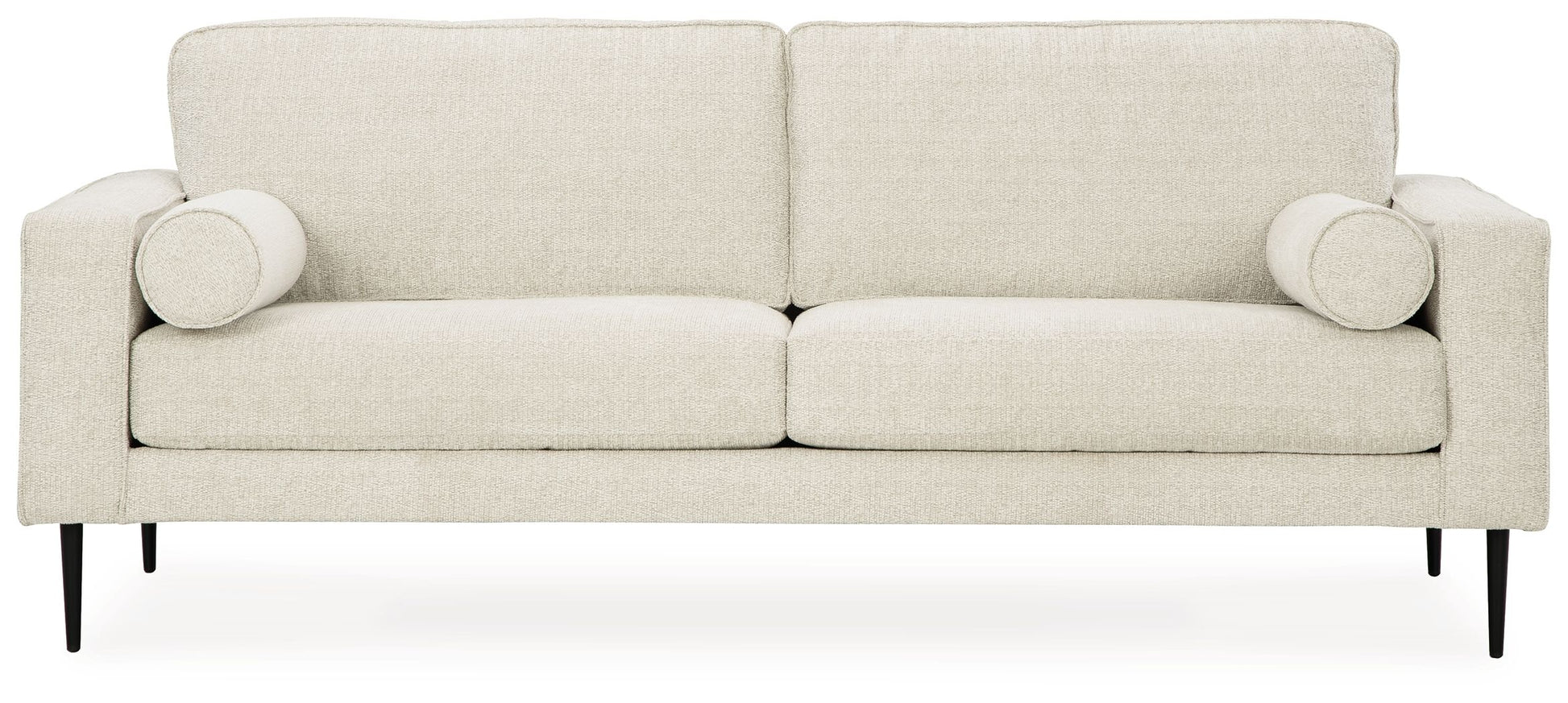 Simple comfort meets modern function in this sofa. An apt addition to apartments and other small spaces, the slim-profiled piece welcomes you with its cozy character. A subtle chevron pattern on the cushions refresh the classic neutral hue, elevating the look while still suiting a variety of styles. Black accent legs add a dash of contemporary flair.