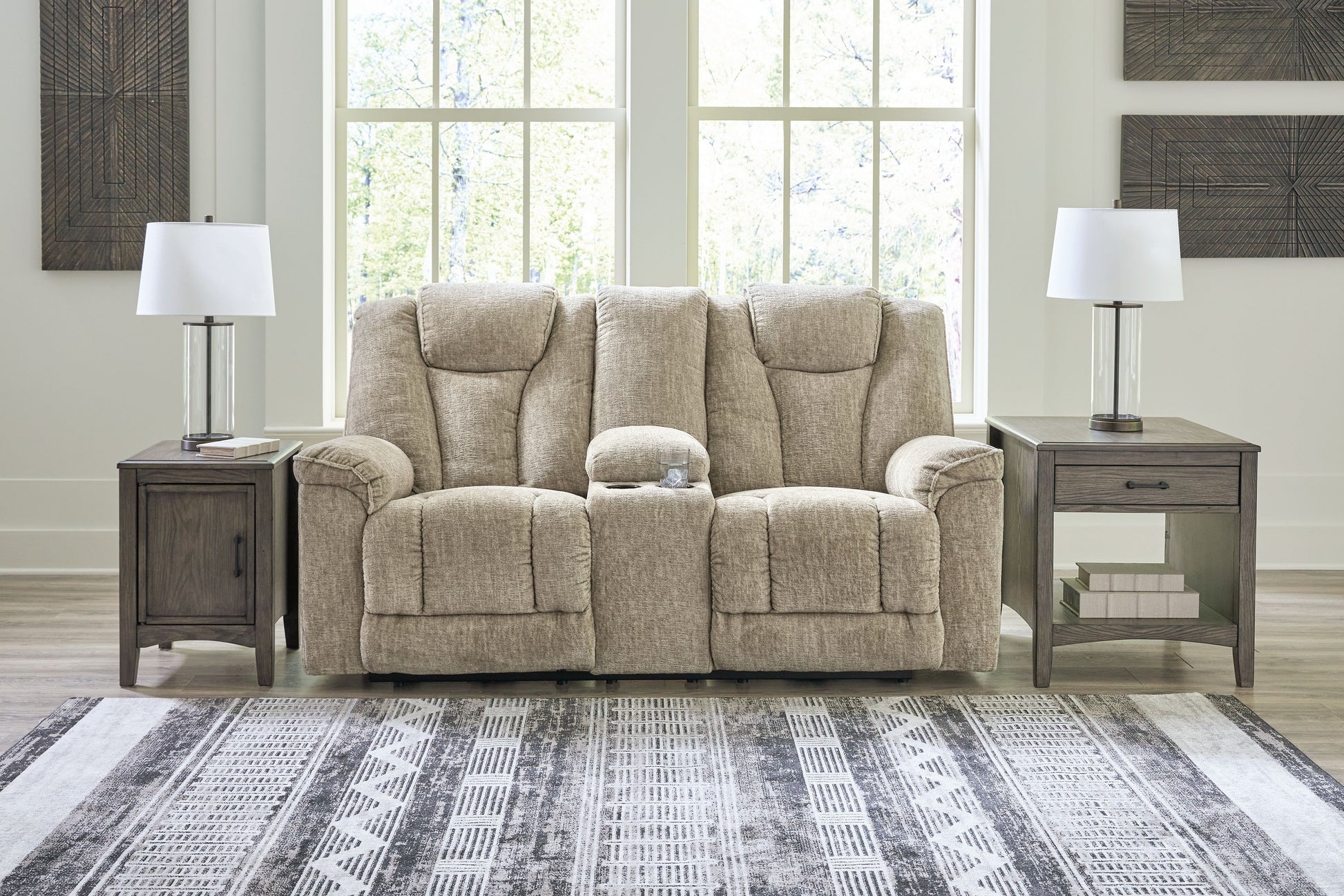 Hindmarsh - Stone - Power Reclining Loveseat with Console/ Adj Hdrst