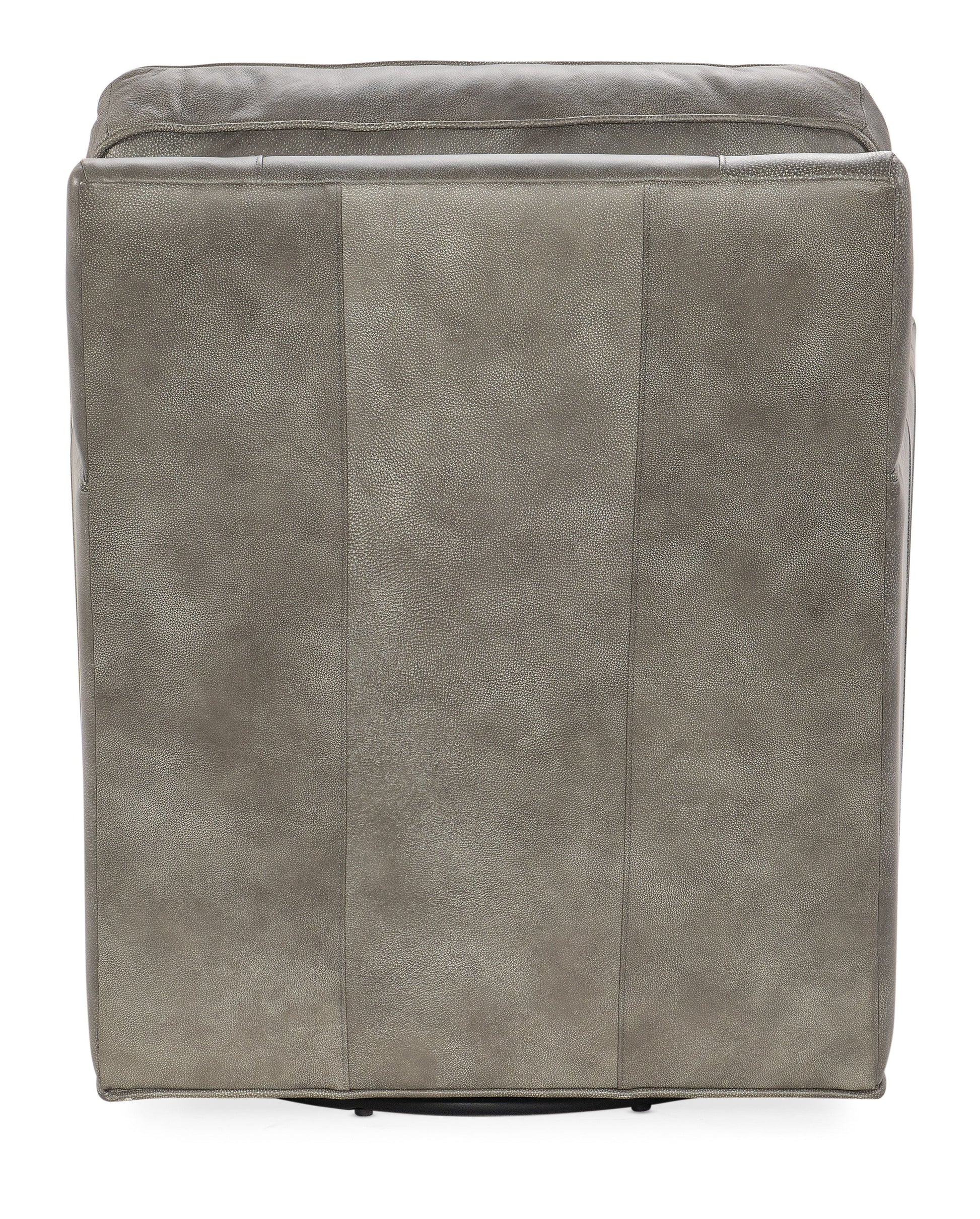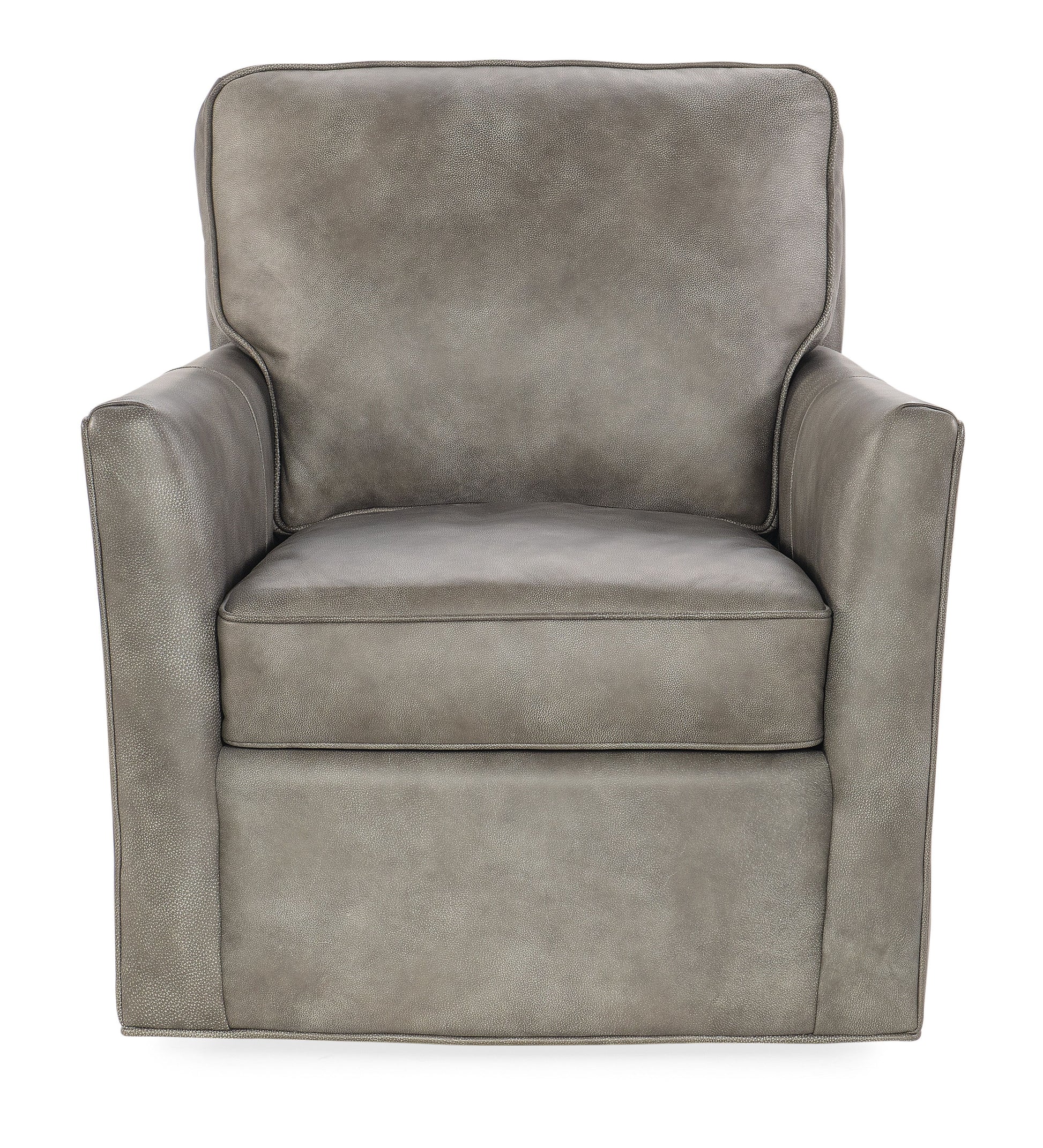 Exquisite tailoring meets sink-in-me comfort in this CC Swivel Chair, with a plush loose seat box cushion and ample back cushion outlined in welting. Generous scale and flared arms add inviting style, along with the Landscape Tundra semi-aniline top-grain leather cover.