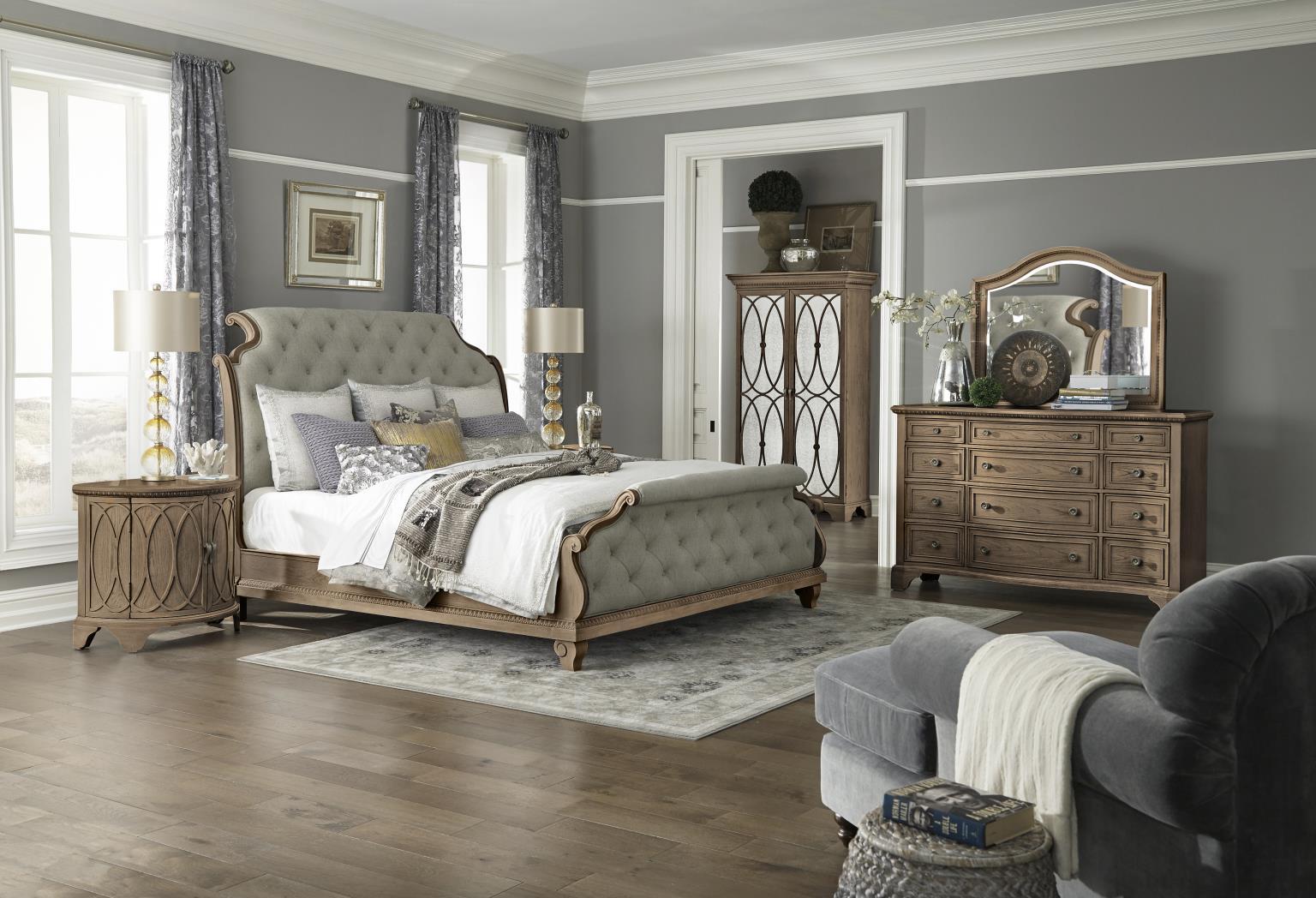 The Jasper County Home Collection reflects that delightful sense of something familiar. Its graceful fluid lines are classic and comfortable. The gentle curves and sculptural air are impactful without being fussy. Timeless silhouettes embracing the relaxed comfort of today's lifestyle. Offered in two finishes. The soft slightly translucent finish highlights the dynamic character of the oak veneers. The result is a perfectly transitional modern finish. Detailed with just enough character to add a spark without feeling formal. Stately is a sophisticated yet casual finish that is achieved through a combination of embellished distressing on carefully positioned light oak veneers. It's enlivened with a low sheen glaze and diffused with a delightful spattering technique and chalk hang up. Distinctive burnished hardware completes the look and complements the handsome character of this exceptional finish.