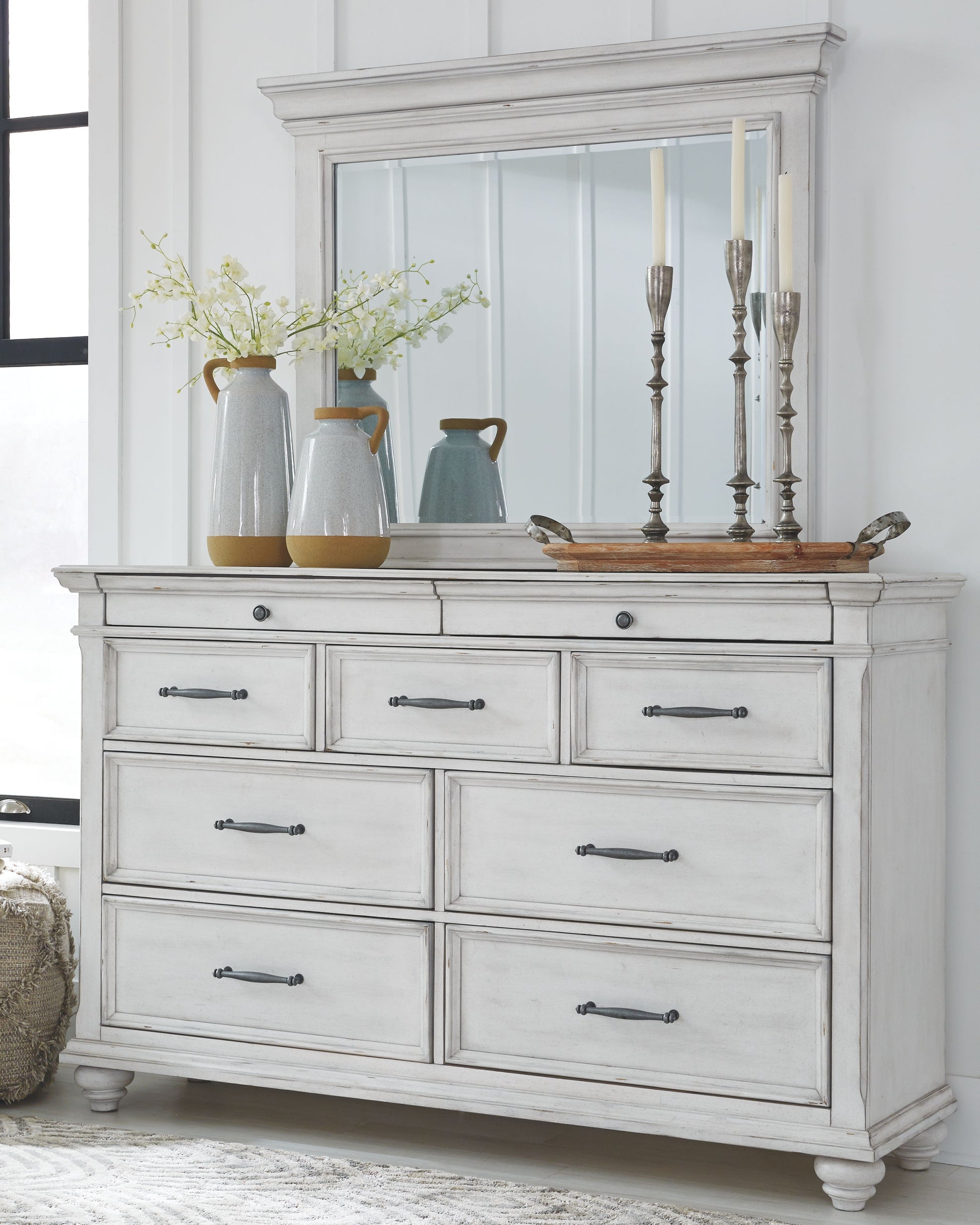 Kanwyn - Whitewash - 5 Pc. - Dresser, Mirror, King Panel Bed
