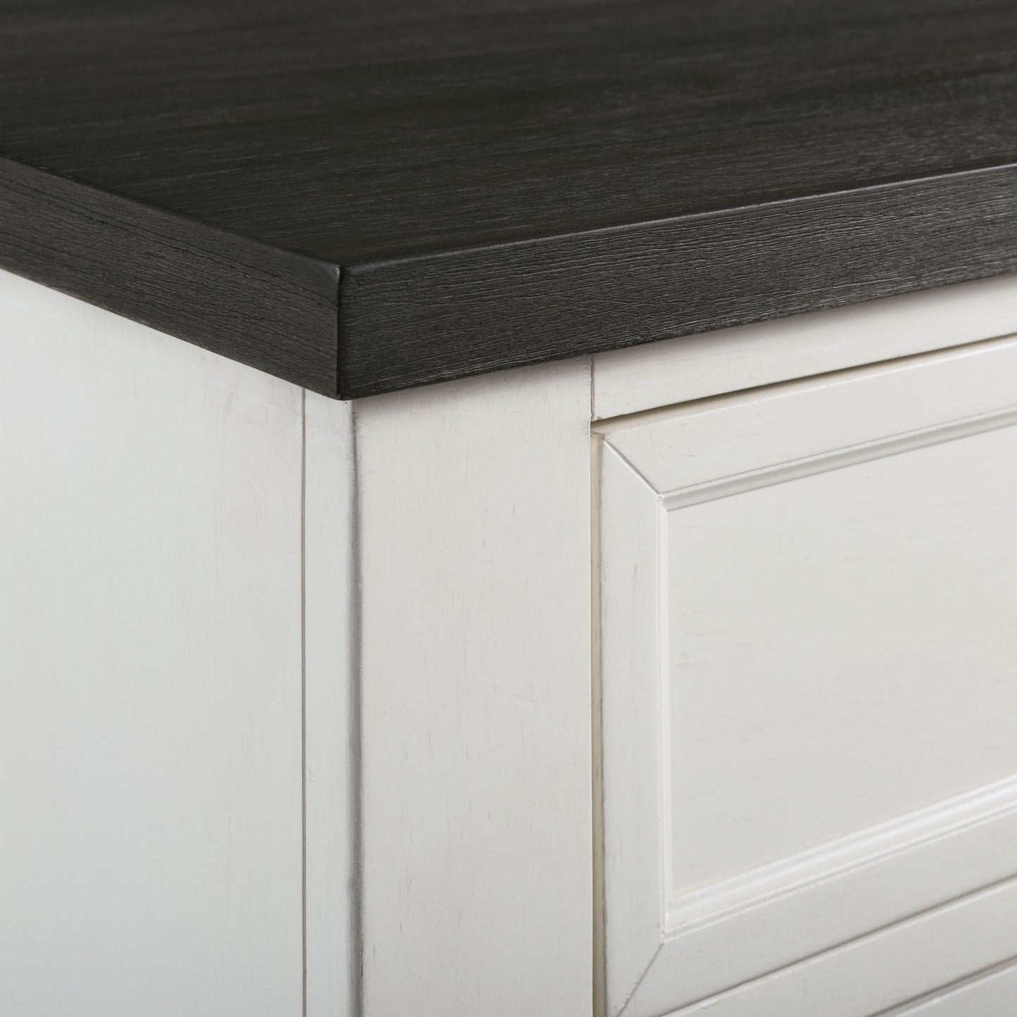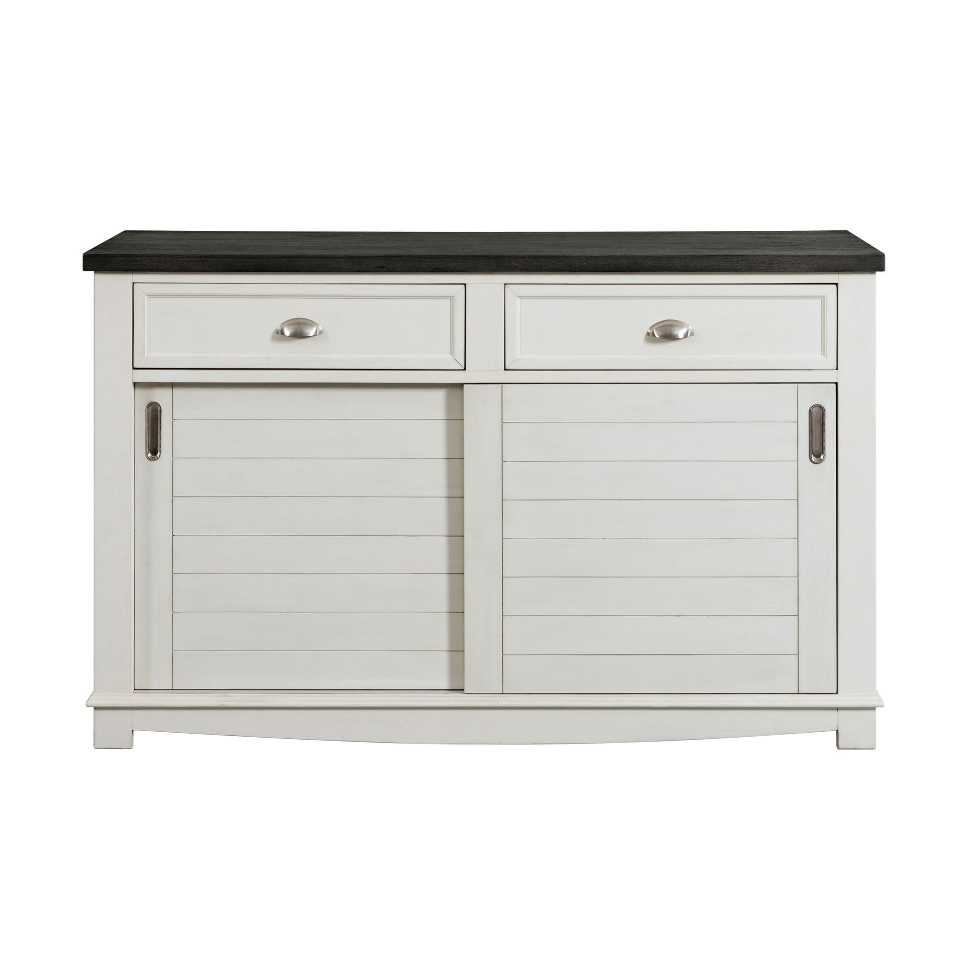 The Kayla Server belongs in your dining room! This server comes with two drawers and cabinet space on the bottom. The drawers feature a black, felt-lined layer to help keep your belongings looking new. The cabinet space comes with two adjustable and removable shelves, letting you create your ideal storage space to fit your needs. A wire brush finish coats the top of the server, while the base is finished in a transitional off-white. Add this cottage chic server to your home today to create the perfect look!