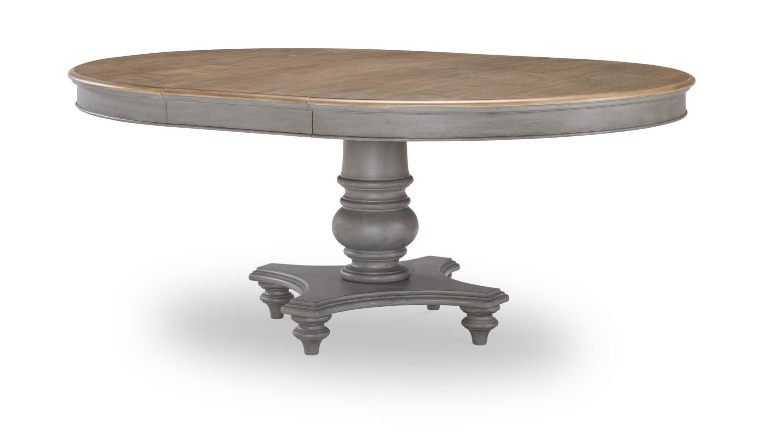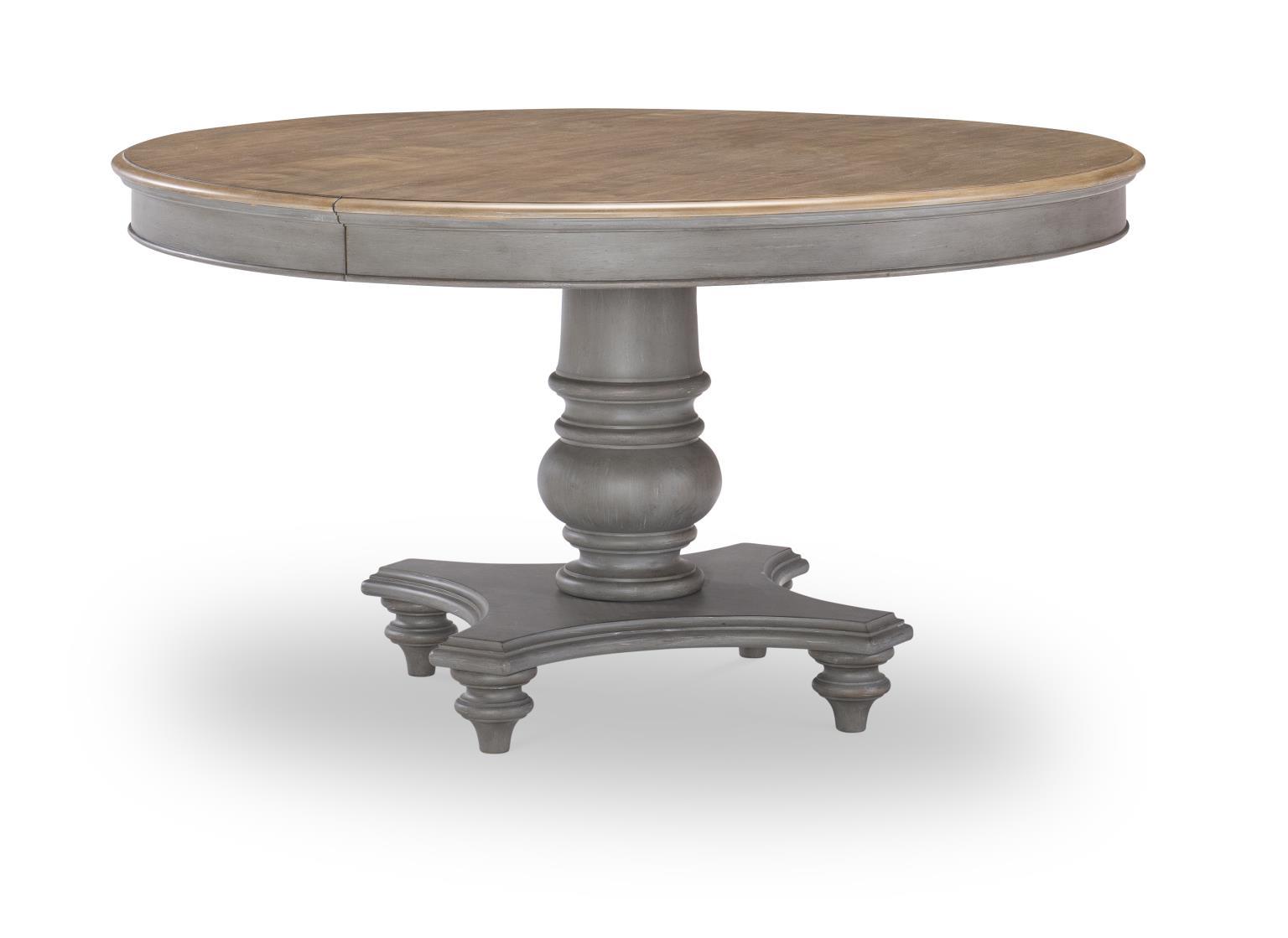 Kingston - Complete Round Pedestal Table - Sandalwood Brown / Tweed Gray