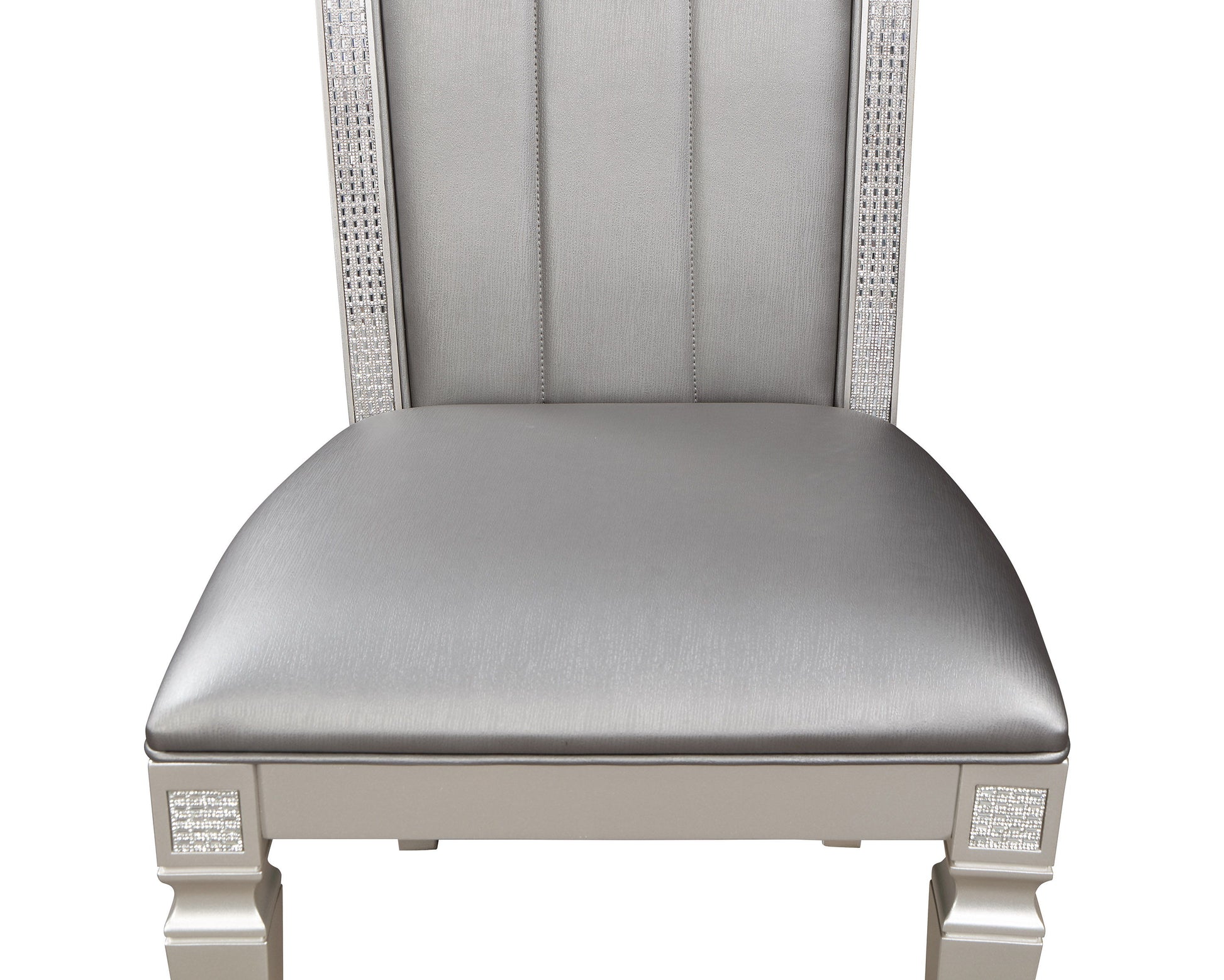 Make a bold statement in your dining space with this glamorous and sophisticated dining group, designed to bring luxury and elegance to every gathering. The sleek table features exquisite detailing along its edges, complemented by a shimmering finish that radiates opulence. Paired with coordinating chairs and a bench upholstered in plush, leather-like fabric, this set offers both comfort and high-end appeal. The matching china cabinet adds a touch of grandeur, providing ample storage and display space with its mirrored backing and glass-paneled doors. Perfect for upscale dinners and stylish entertaining, this dining group transforms any space into a lavish retreat.