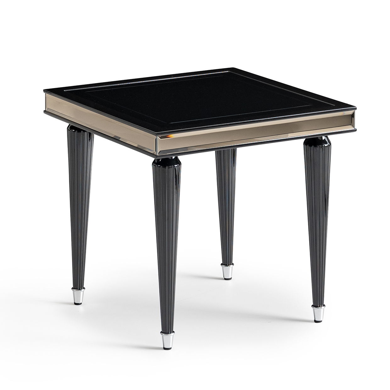 A charming addition to your luxurious ensemble. This mirrored end table will be a perfect companion to your favorite seating piece or can be used as a luxury accent table to bring a touch of glamour to any room.