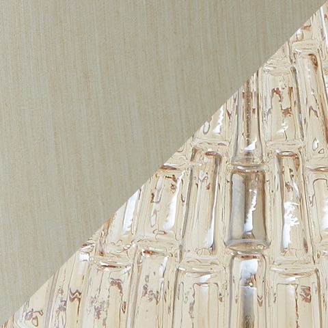 - Made of champagne finished glass and brass-tone metal with modified drum shade