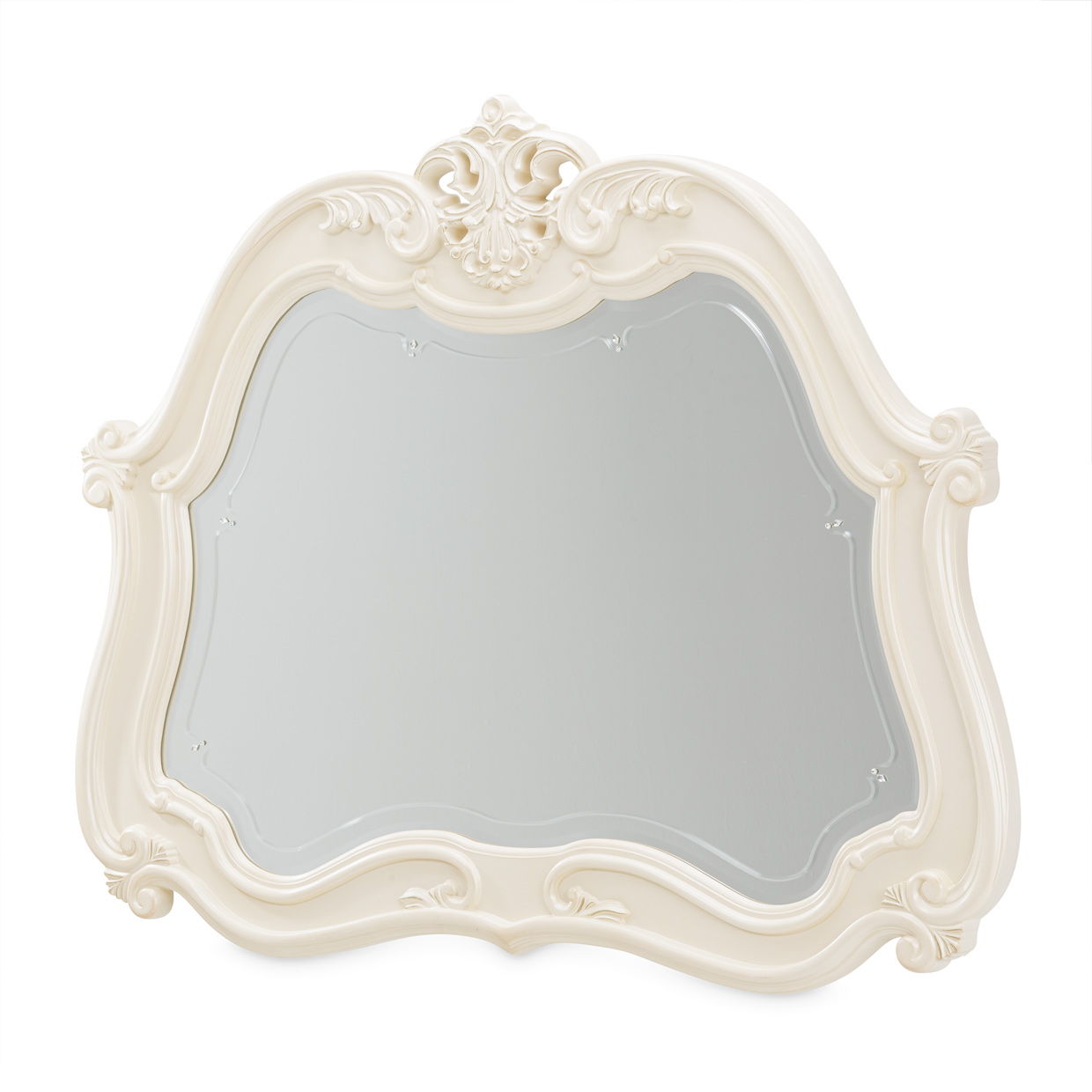 With an ornate mirror frame featuring a stunning crown medallion and crystal accents, the Lavelle Classic Pearl mirror is an elegant addition to any bedroom or living room, mixing fashion and functionality.
