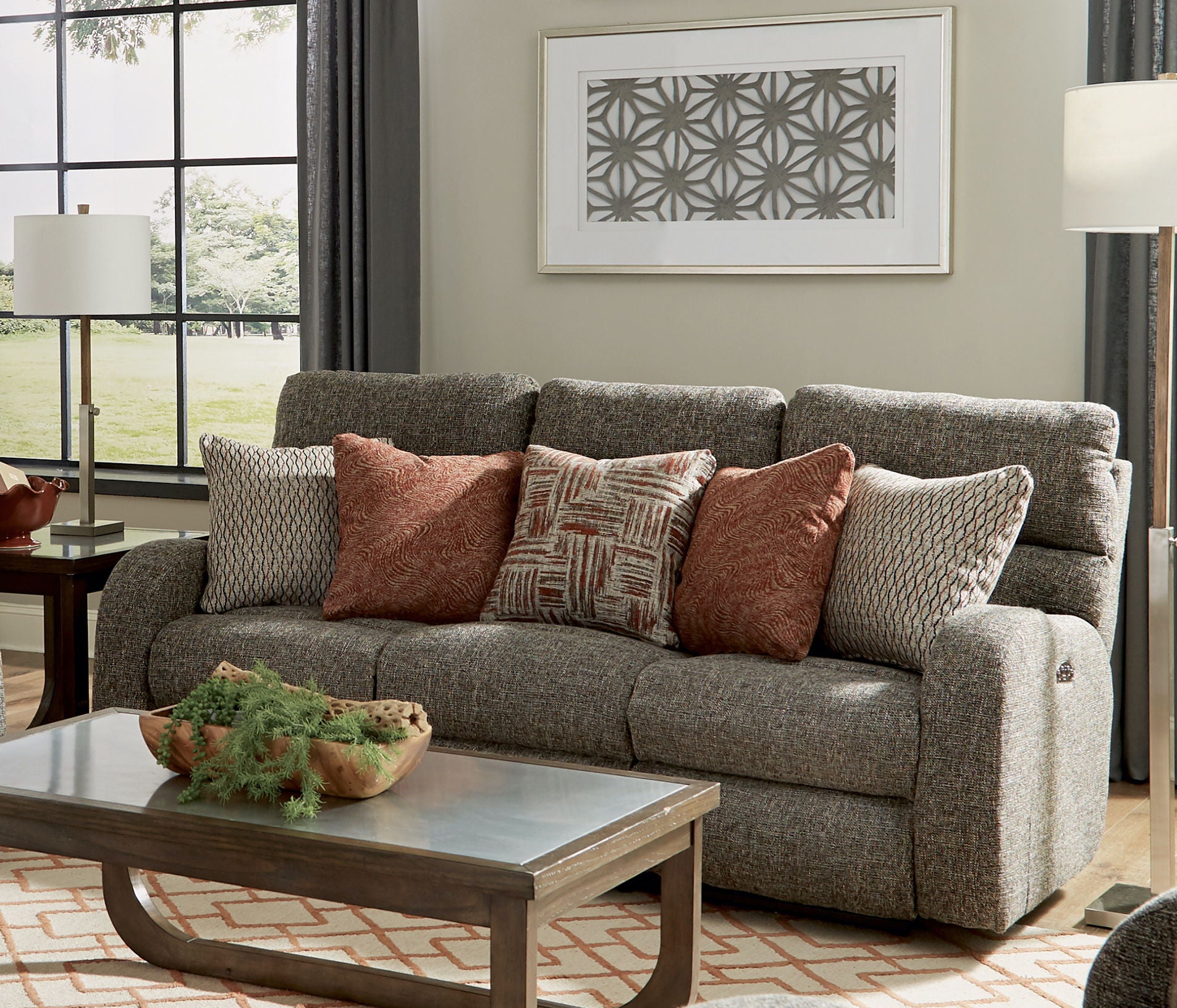 LIAM feathures a waterfall back and an assortment of decorative Transitional toss pillows for ultimate comfort.FeaturesPower Recline, Lay Flat, Comfor Gel, Custom Creations, Power Headrest, USB Charging Port. Details: Comfort Control Panel Technology, Textured Multi-Color Chenille Fabric, Power Recliner/Power Headrest Feature, Radius Track Arm Design, Waterfall Back Provides Ultimate Comfort, Decorative Transitional Pillows, Comfort Coil Seating featuring Comfor-Gel.