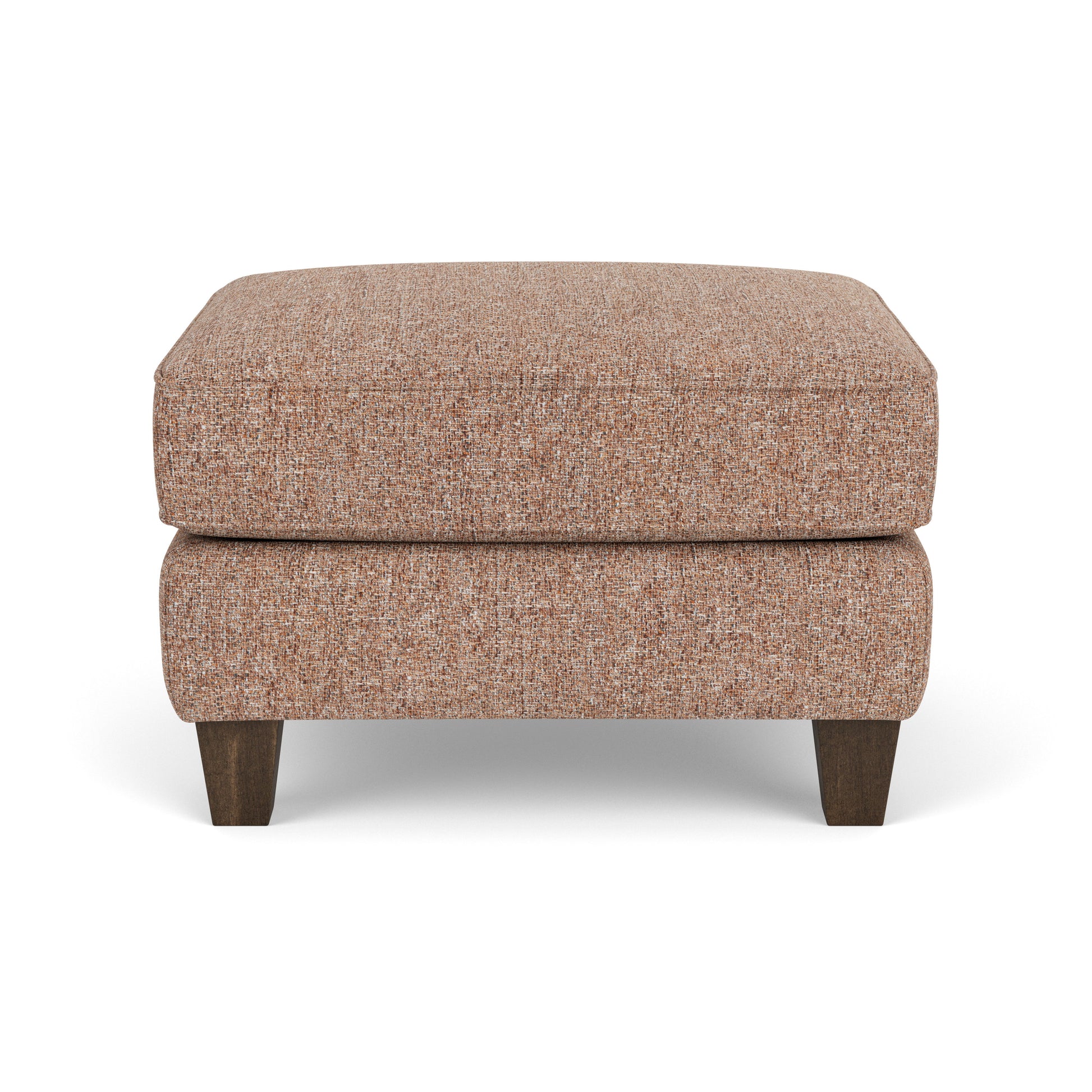 Fit, flared, and artfully paired with traditional style. Libby is a transitional stationary style with clean lines and graceful curves. Its off-the-floor frame is complimented by square tapered legs. This ottoman features a detailed welt trim. The posh and plush style of Libby fits in with many home décor spaces.