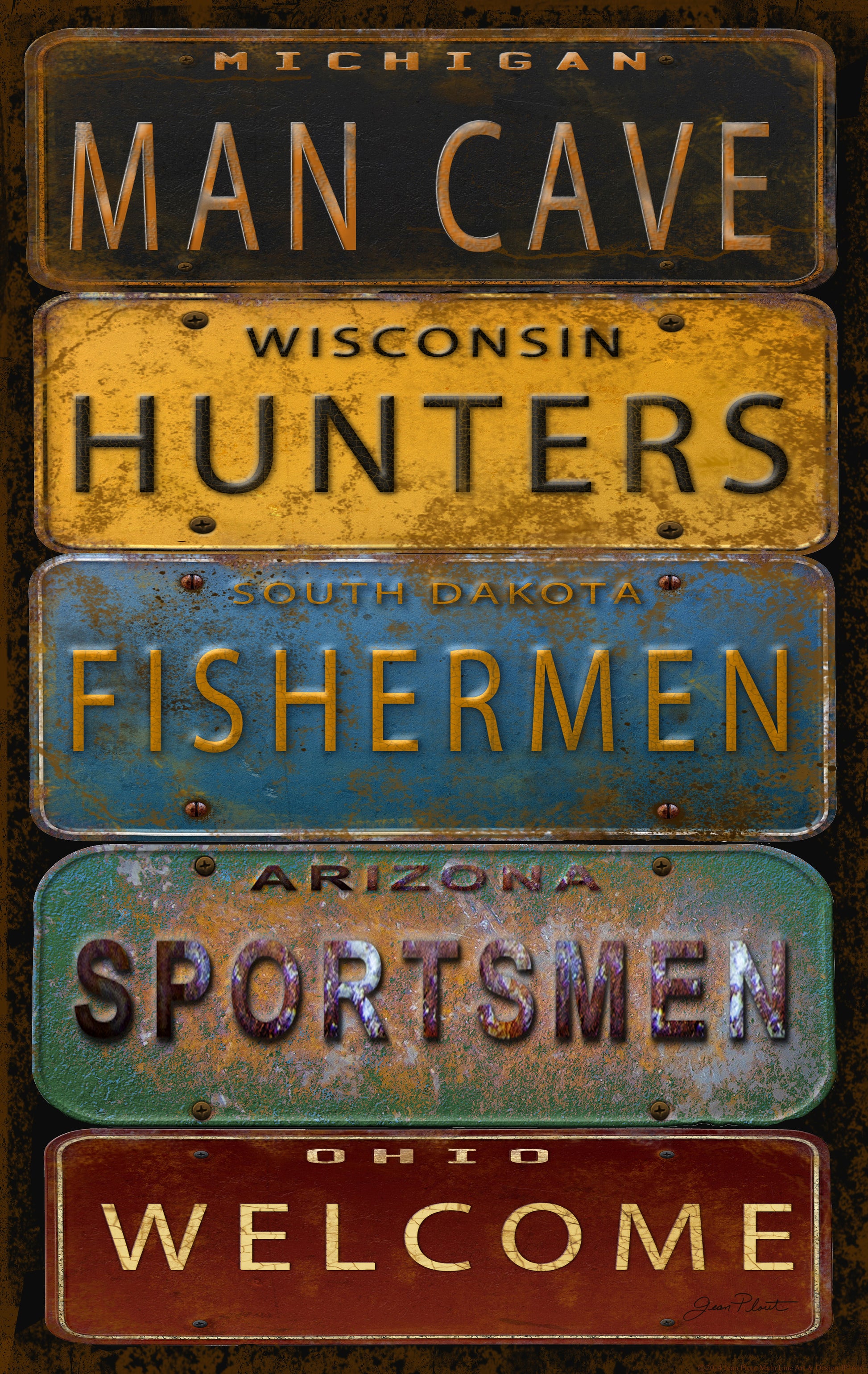 License Plate Man Cave By Jean Plout - Light Brown - Dark Brown