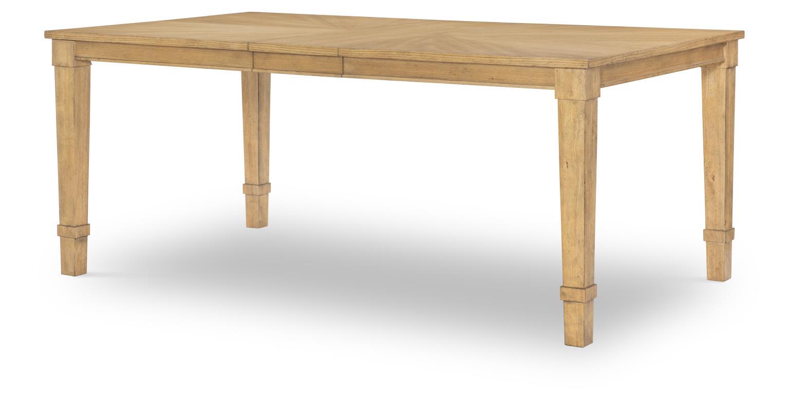 Crafted of Oak Veneers the Linden group is finished in a warm Honey Oak tone with shaping on the legs and on the pedestal base of the round table. The classic credenza silhouette has 2 doors and 2 drawers and a bottom shelf. Traditional profiles mixed with country and rustic elements allow this collection to work in multiple design settings. This casual dining collection is scaled to perfectly fit smaller dining areas breakfast nooks and open concept plans. The rectangular dining works great as a smaller set or in a more formal dining area with seating for up to 6.
