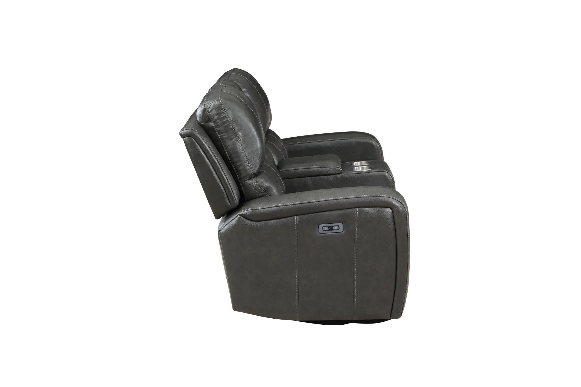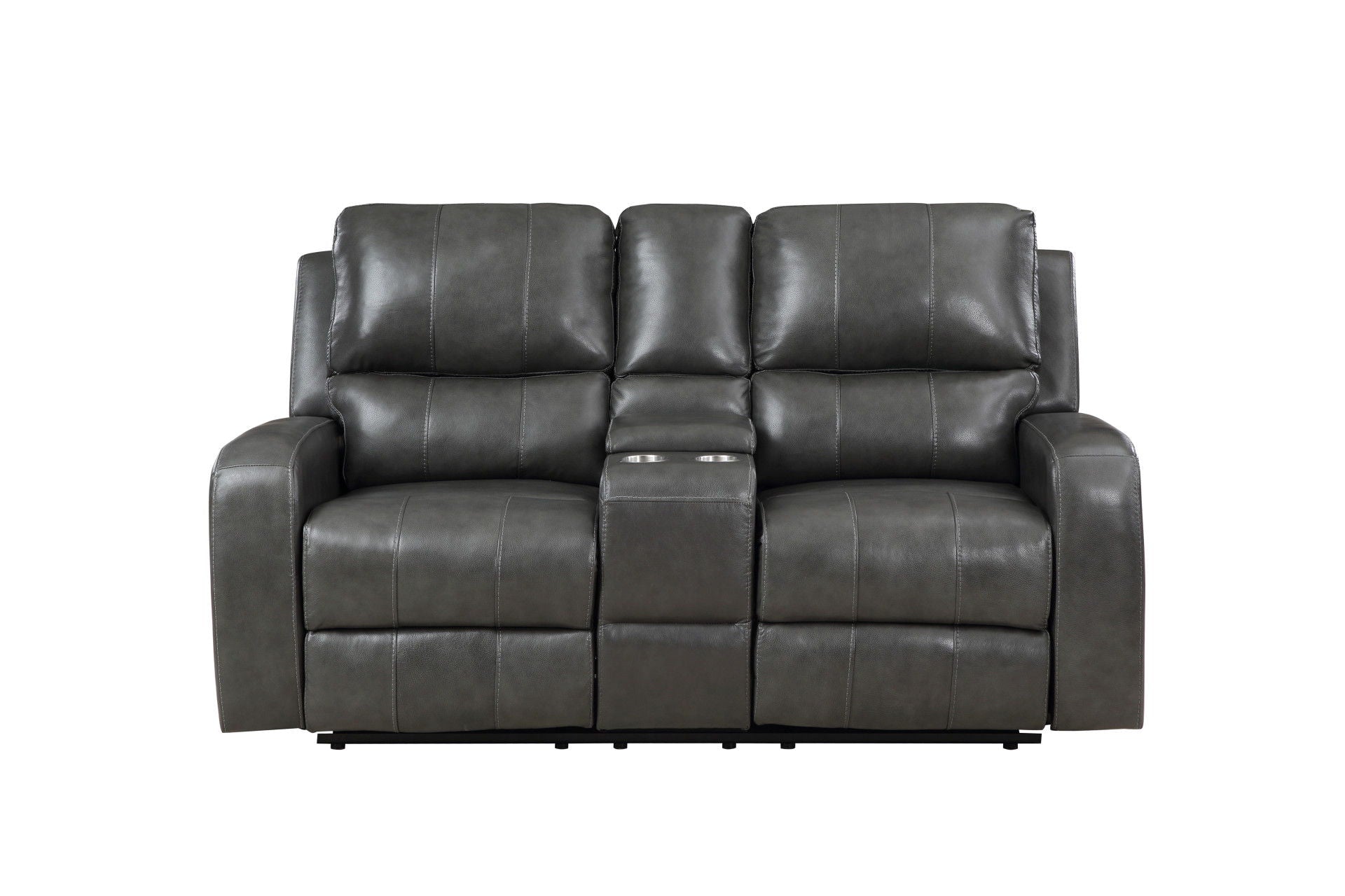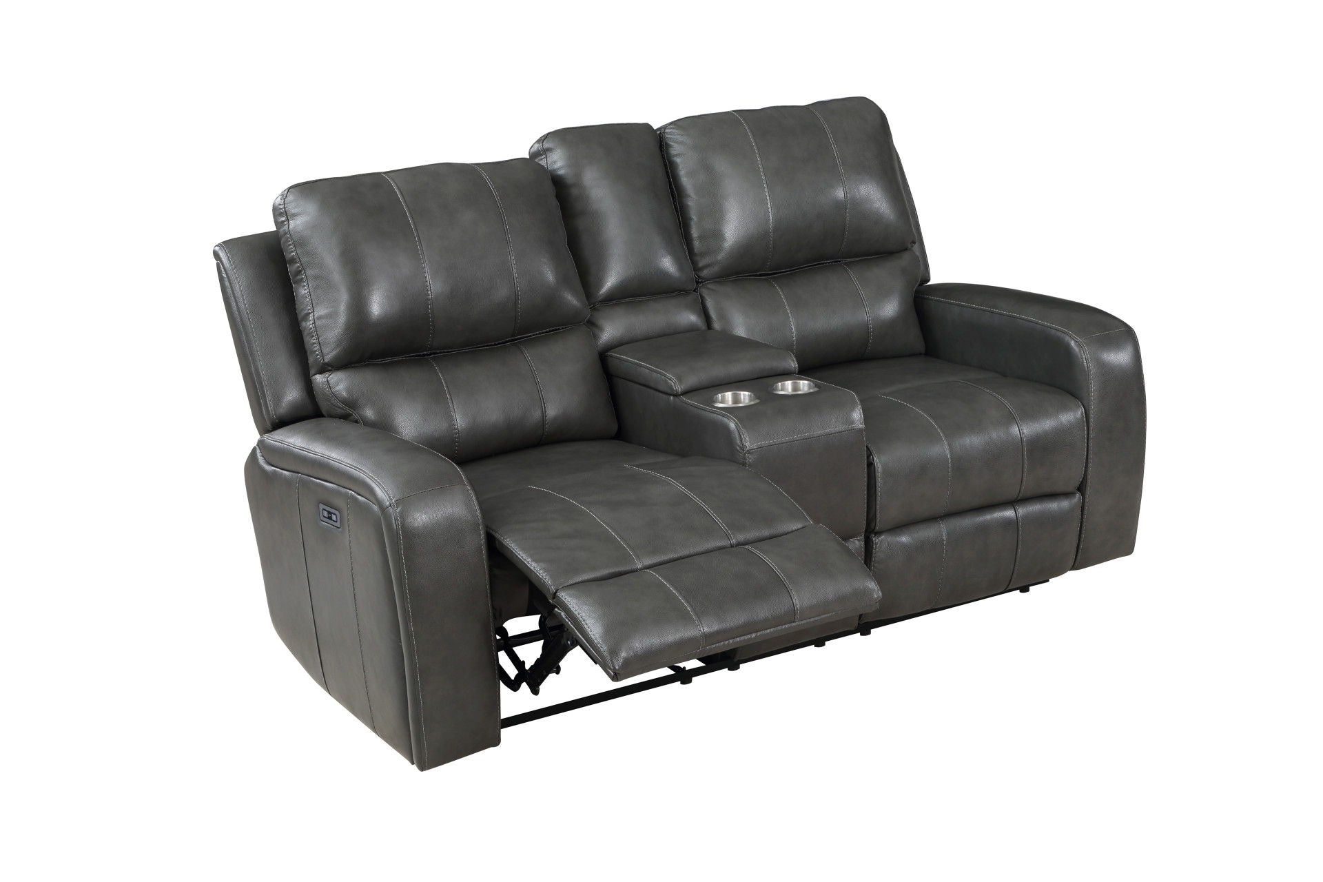 Linton - Leather Console Loveseat With Power Footrest - Gray
