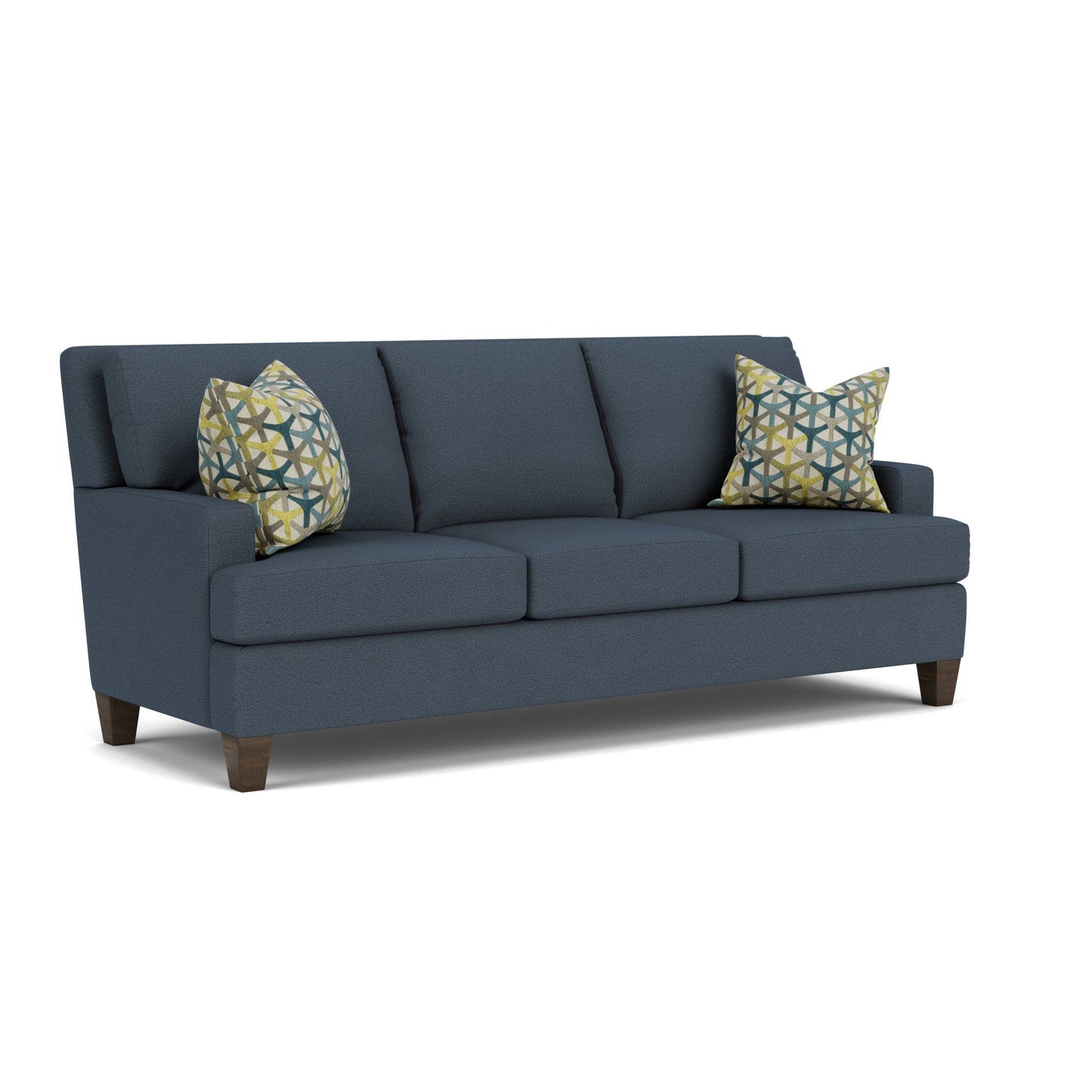 Clean-Lined Comfort. Discover the perfect blend of comfort and design sophistication with the Lloyd sofa, where mid-century modern inspiration combines with timeless touches. The refined, picture-frame back of this 3-over-3 frame lends an architectural look and optimal support, while the square tapered legs create an elevated allure. The luxurious t-shaped cushions provide ample seat space between track arms and provide lasting support with the Blue Steel Spring at the heart of each seat. Complete the look with two accent pillows that are customizable to your choice of fabric.