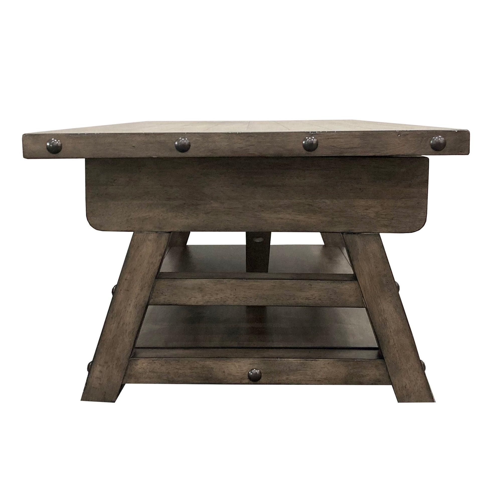 Lift your living room to a new level of style and functionality with this rectangular lift-top coffee table. The multi-step, long-lasting finish gives this coffee table a handsome and timeless look, while the decorative metal nailhead trim adds a touch of authenticity to its rustic, handcrafted aesthetic. The open shelving provides ample storage and display space for books, magazines, and decorative accents, while the angled legs and supports create a strong and stable base. The English dovetail drawer construction ensures durability, so you can enjoy your coffee table for years to come.