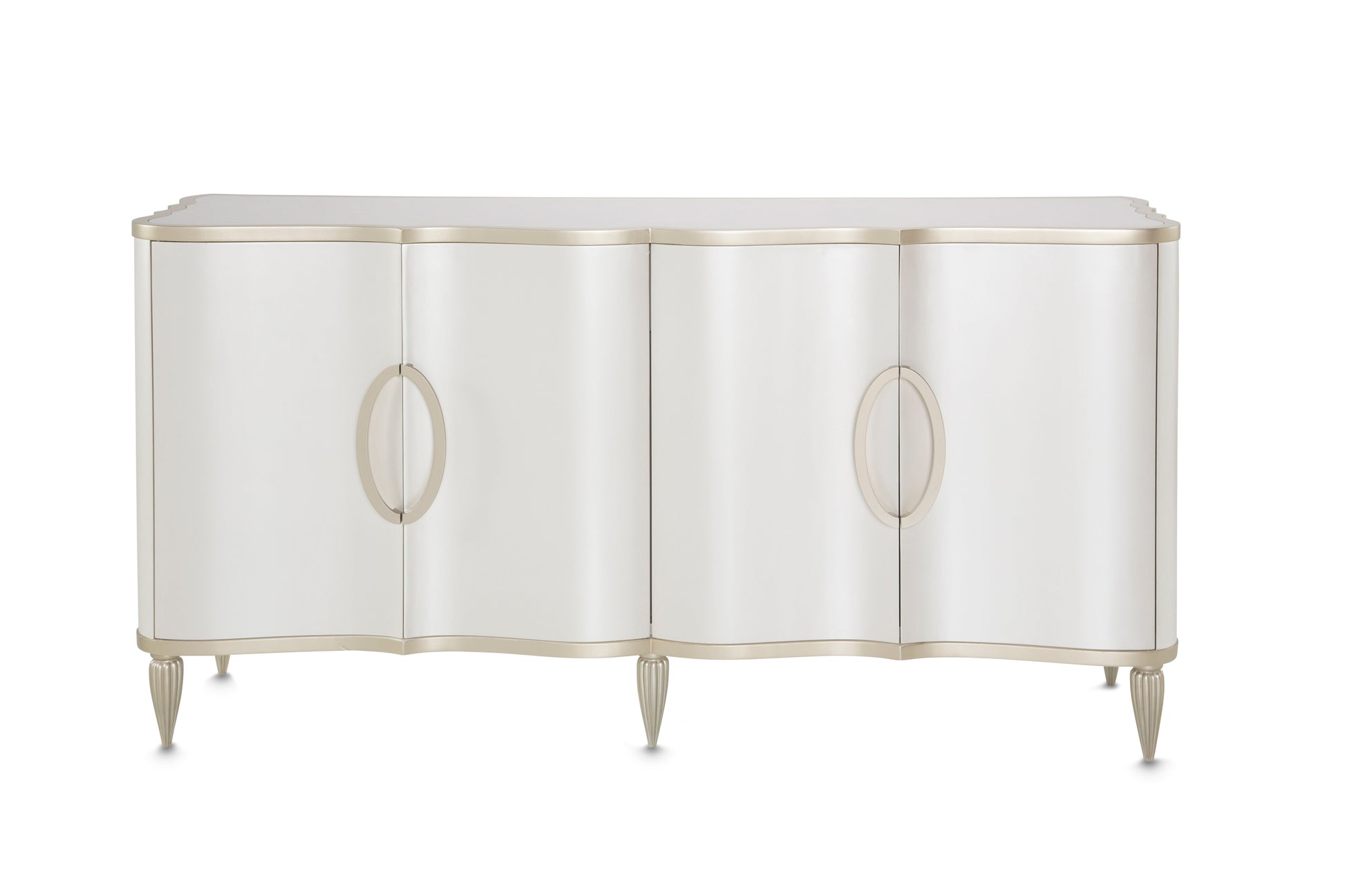 Set your dining room aglow with the London Place Sideboard! Sophisticated hardware, pearly