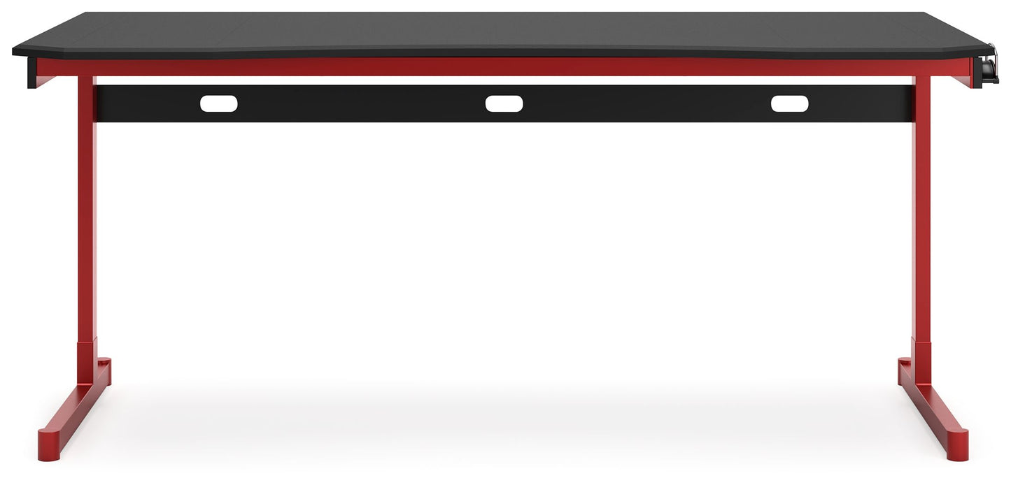 Work smarted (and look cool doing it) with the new-age efficiency of this home office desk. Its streamlined design is ideal for gaming or as a general workstation. This super-sleek yet fully-loaded home office desk has a mouse pad surface cover for ultimate efficiency. The fantastic features also include a headset hanger conveniently mounted on the side, as well as a raceway tucked underneath for managing all your cords.