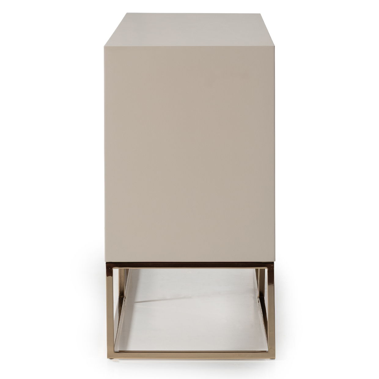 - Base is made from stainless steel and boasts an open frame design and sleek legs in a gleaming gold finish
