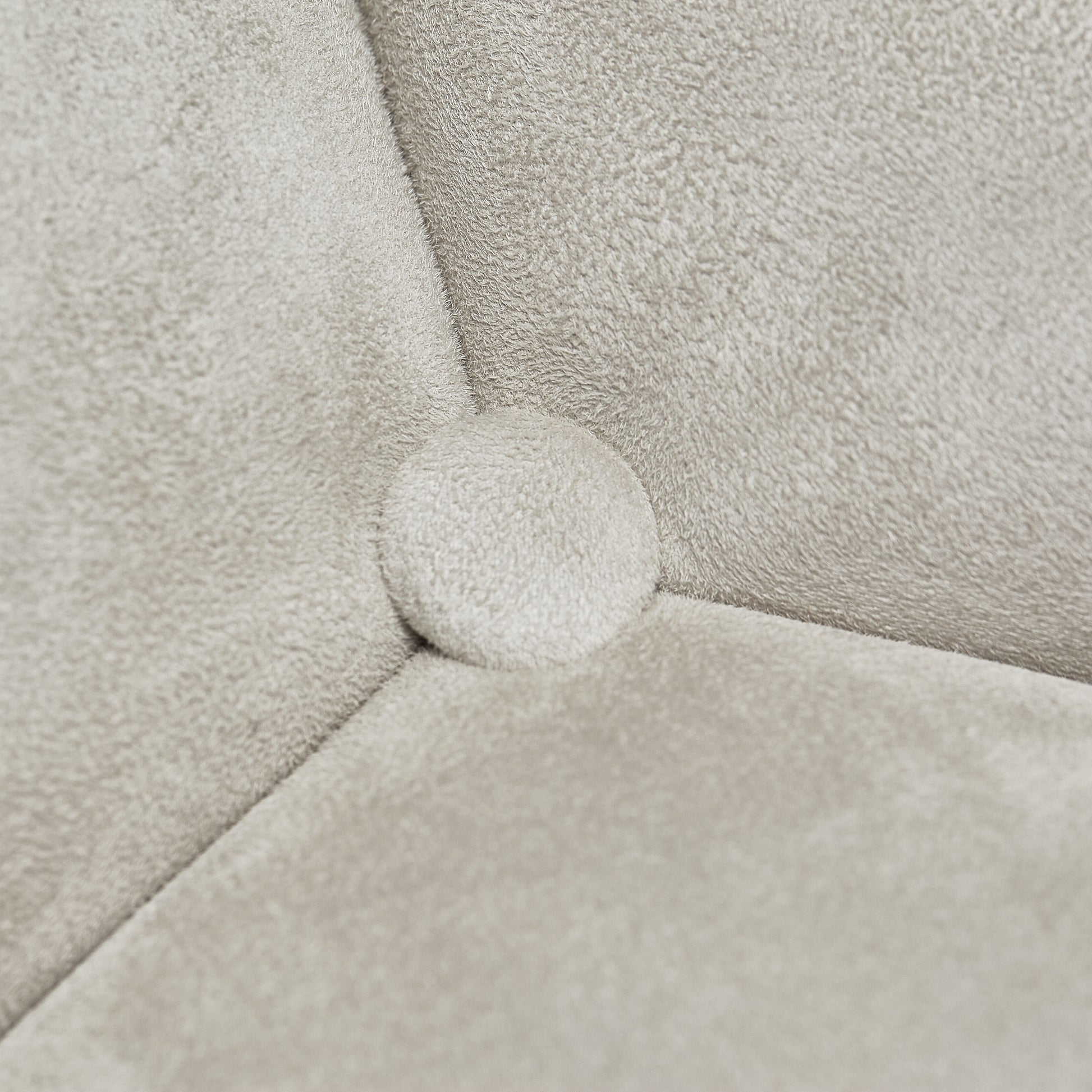 - Ottoman is upholstered in faux suede in a Doeskin color and designed with a clover shape