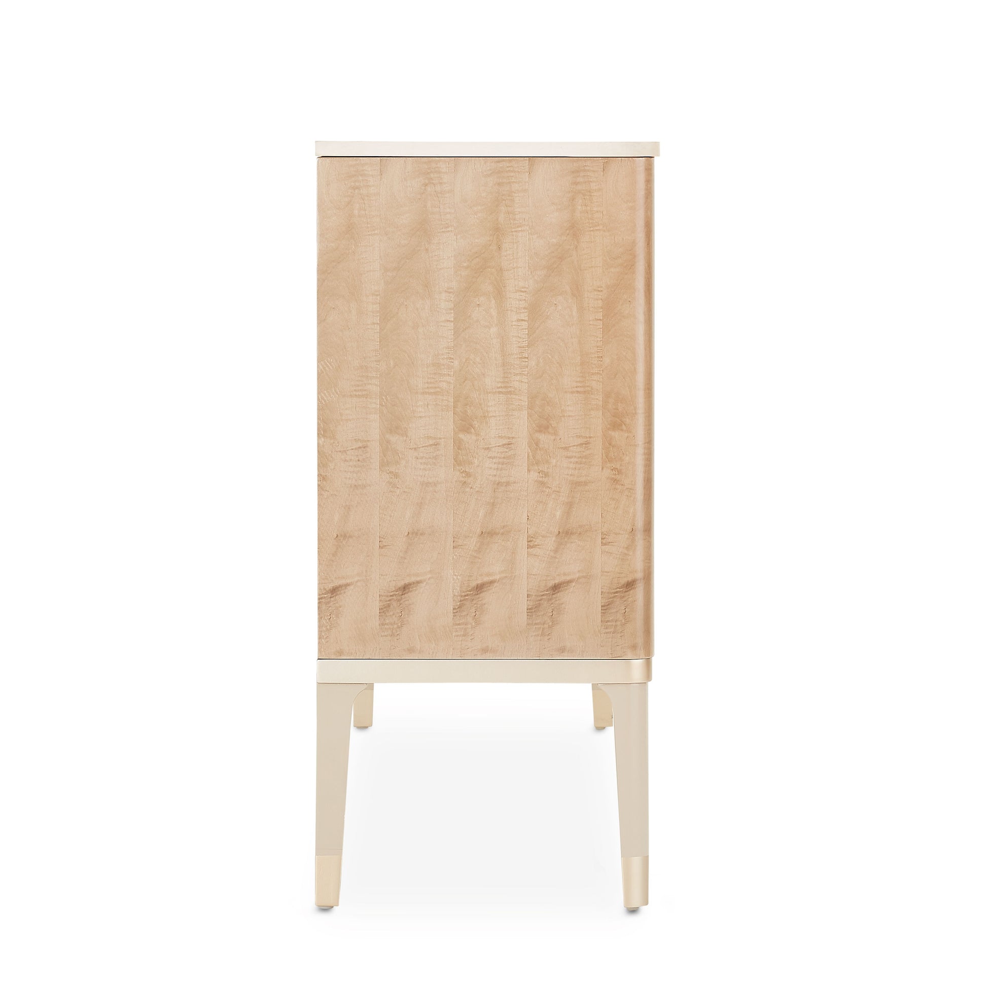- Sideboard features a maple veneer frame in a Blush finish with Chardonnay accents