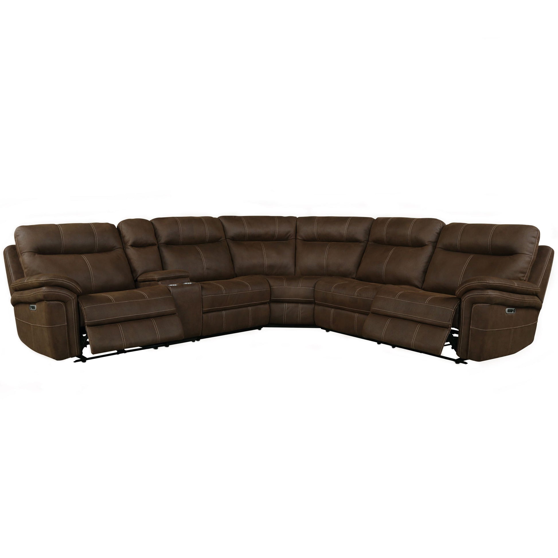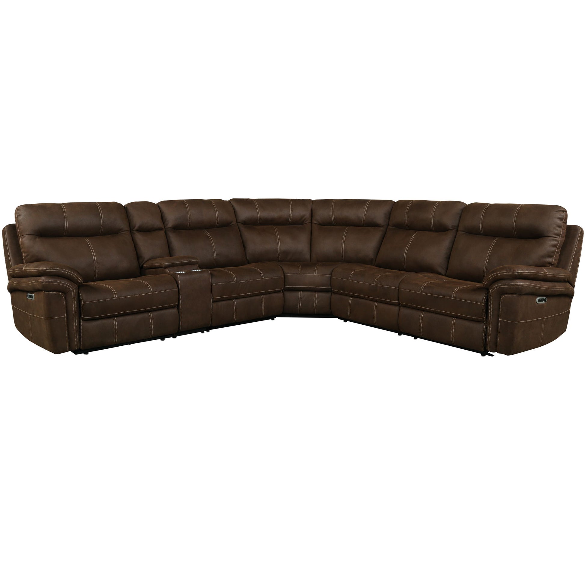 Even commercials are more tolerable when you're relaxing in the plush comfort of this six-piece sectional seating group. You'll love the luxury of its two power recliners on each end that features power headrests. Between those, you'll find an armless recliner, an armless chair, a corner wedge and a multifunctional storage console with cupholders.