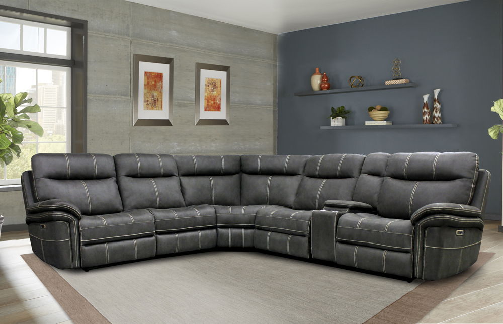 Mason - 6 Piece Modular Power Reclining Sectional with Power Headrests and Entertainment Console - CHARCOAL