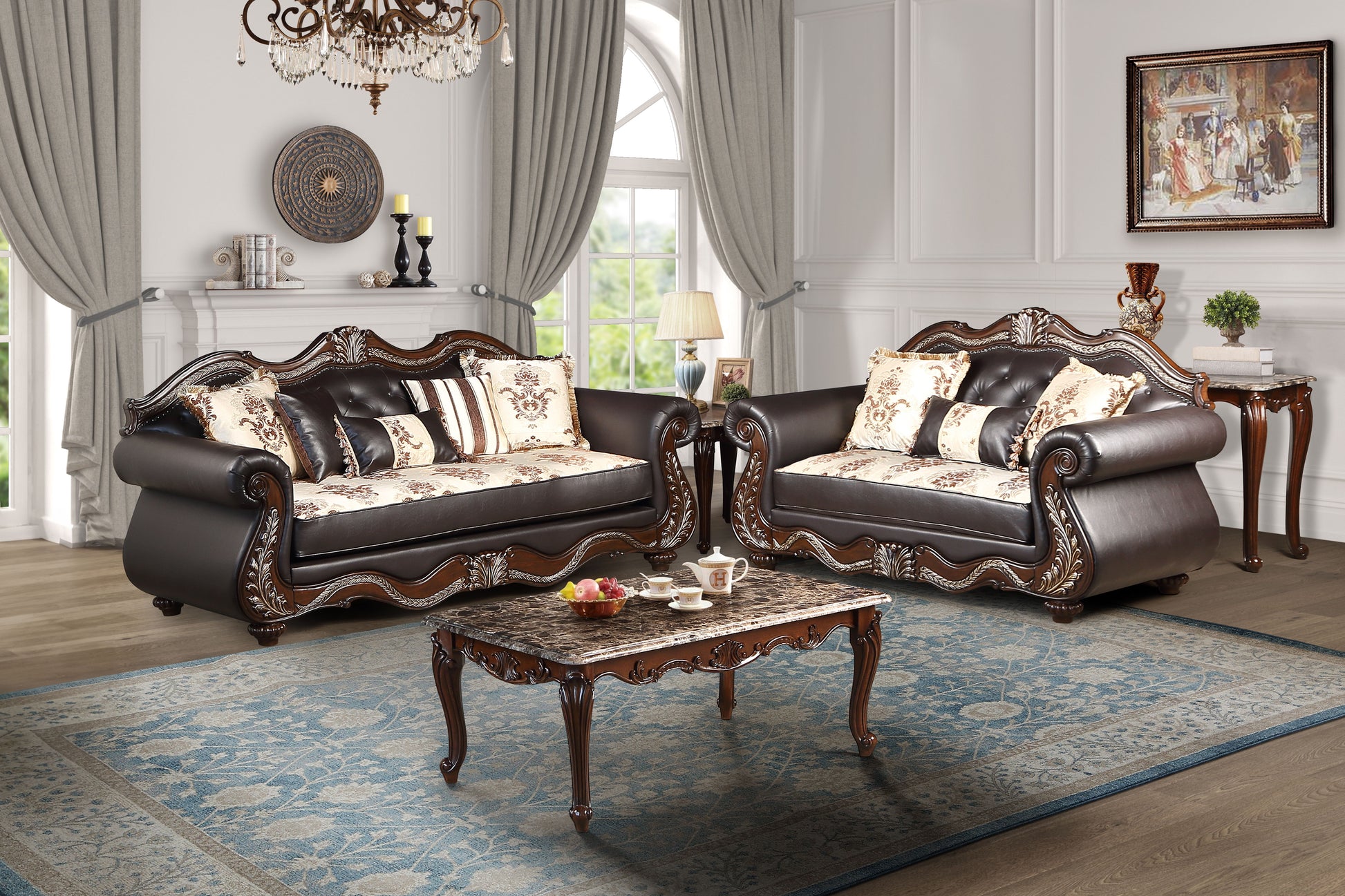The Royal Classics Maximus Living Room Set is designed with a perfect blend of heirloom craftsmanship and timeless elegance. Each piece is expertly crafted from solid pine with premium polyurethane carvings that offer both durability and beauty. The carvings are lightweight yet robust, resistant to moisture, rot, and cracking, ensuring they maintain their intricate details with minimal maintenance. A meticulous multi-step finish enhances the wood grain, while burnished gold tipping highlights the elaborate carvings, adding a touch of luxury. With its traditional Baroque-inspired design, the set exudes Rococo opulence, bringing a regal elegance to your home. The rich brown vegan leather upholstery, complemented by soft-textured and patterned accent pillows, creates a refined, decorator-quality look. Button-tufted backs and nailhead trims trace the graceful wood frame, adding attention to detail that completes the set''s sophisticated aesthetic. For added convenience, the upholstery backs and bases are shipped separately, ensuring easy transport and hassle-free setup, making this set an ideal choice for any stylish living space.