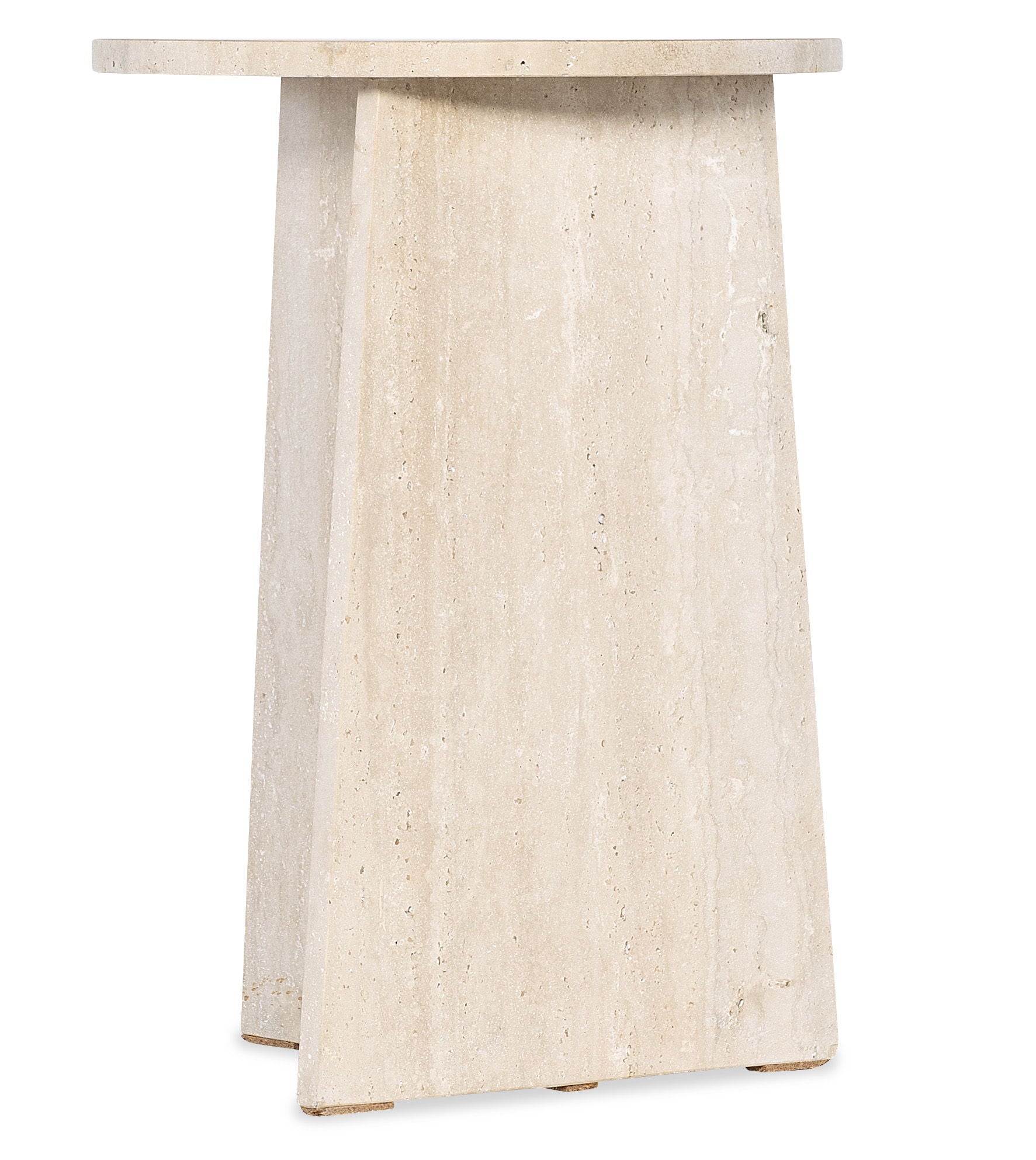 Introduce natural charm to your space with the Cirque Table from the Melange collection. This round table features a travertine stone top and base with a tapered pedestal design. Its tones effortlessly complement a variety of decor styles, making it a stylish and versatile addition to any living room or bedroom.