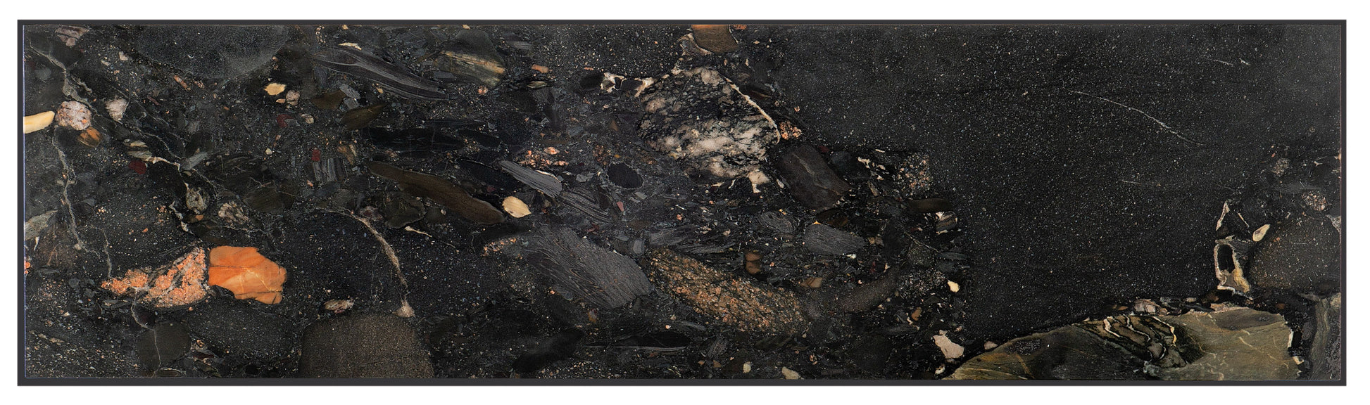 Crafted of Iron and Stone, the Darcie Console has an industrial, medieval vibe with turned metal legs in a black finish with gold crackle accents and a black stone top. With a slender 18-inch depth, the console can fit into compact spaces.