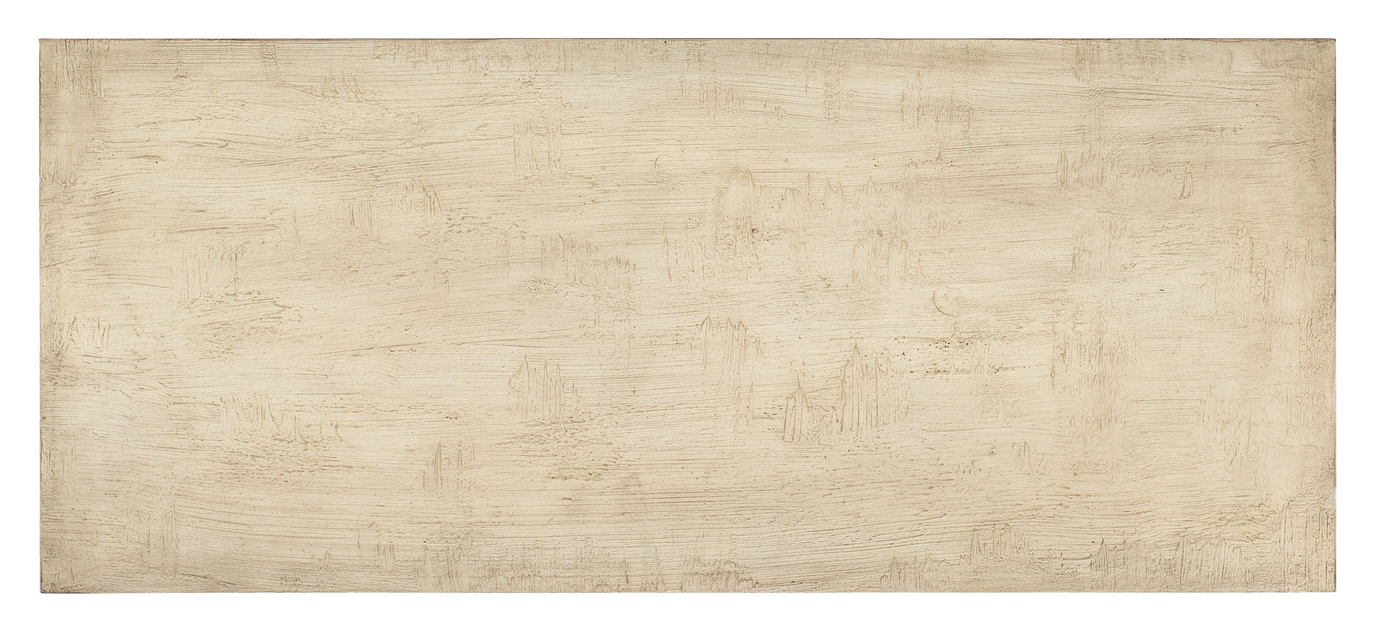 - Textured cream colored finish with cream drawer interior and antique pewter ribbed bar pulls