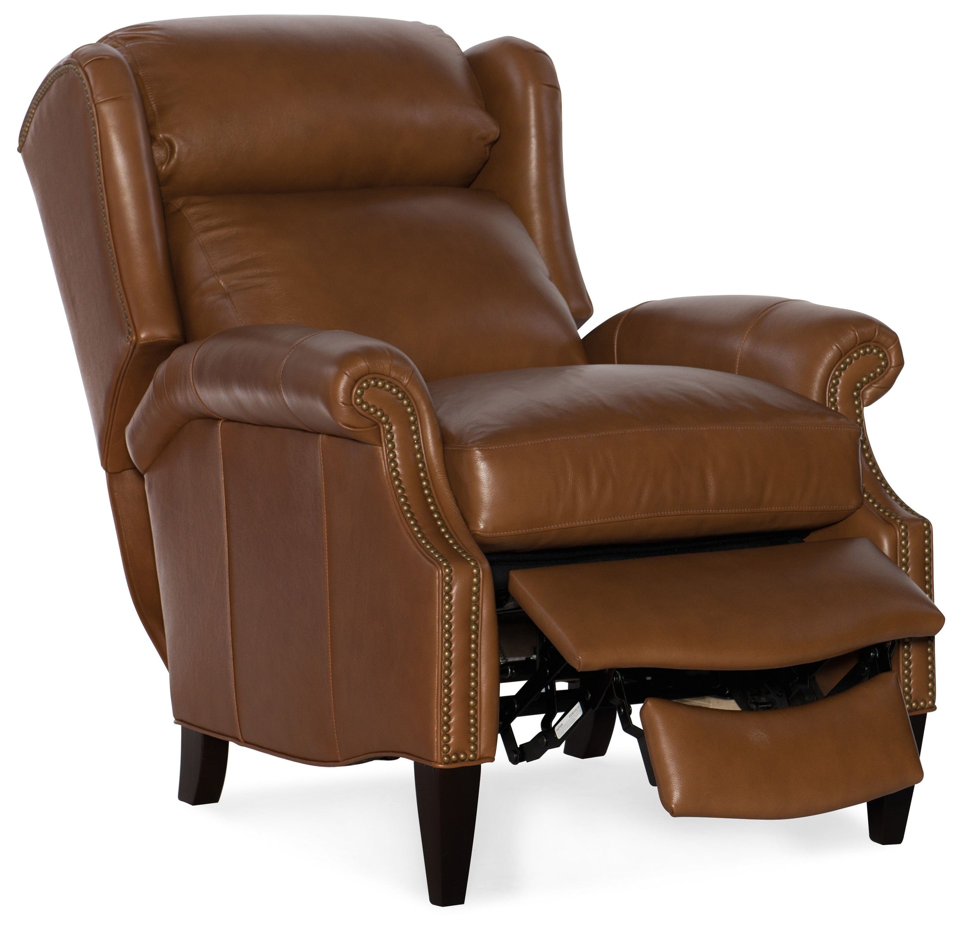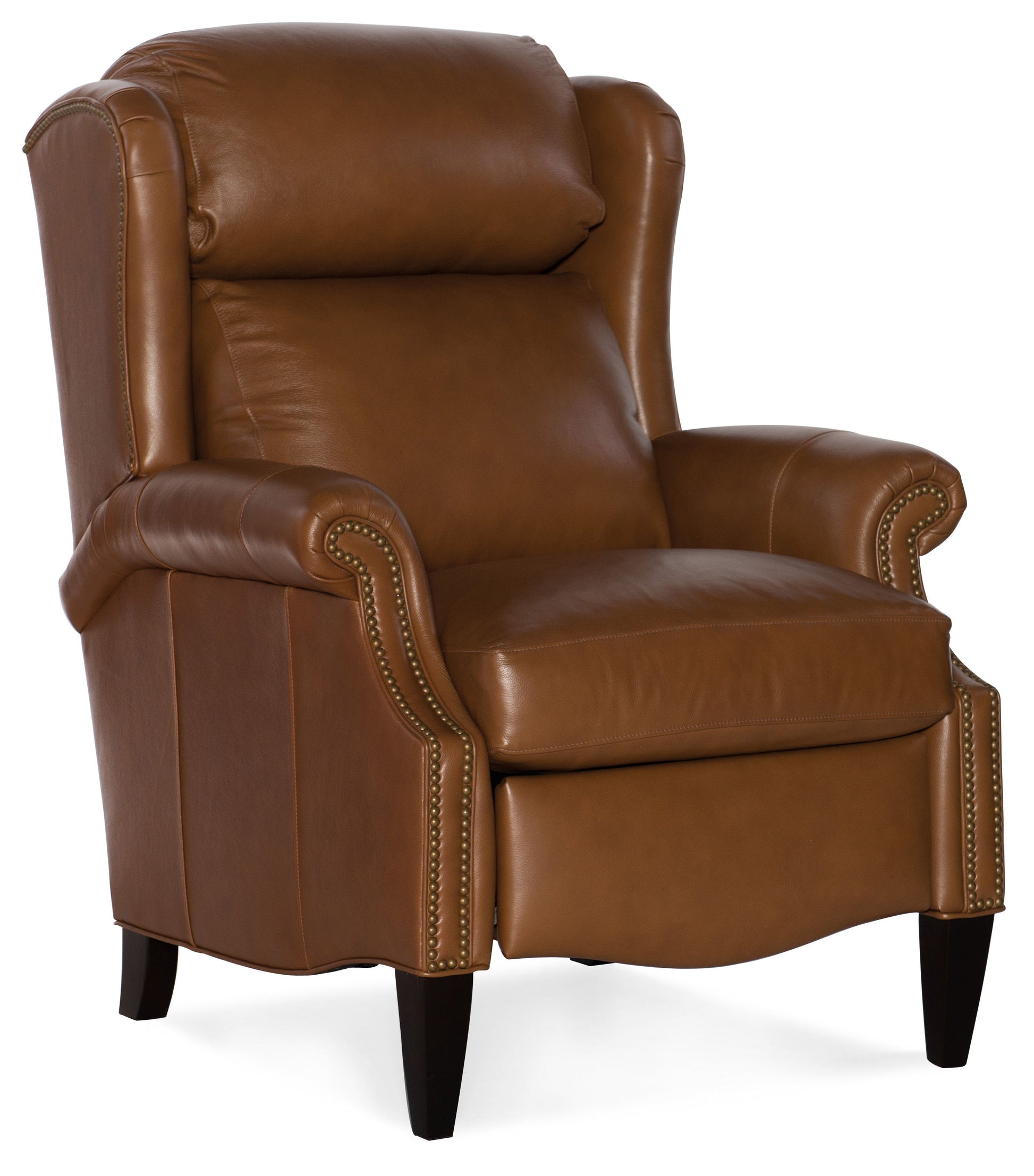 The Miller 3-Way Lounger features a spring down seat cushion and bustle back. It comes standard with a mahogany finish and #9 Natural nailhead, but other finishes and nails are available at no additional cost. It uses a pushback recline, but a power button and battery pack is available with an upcharge.