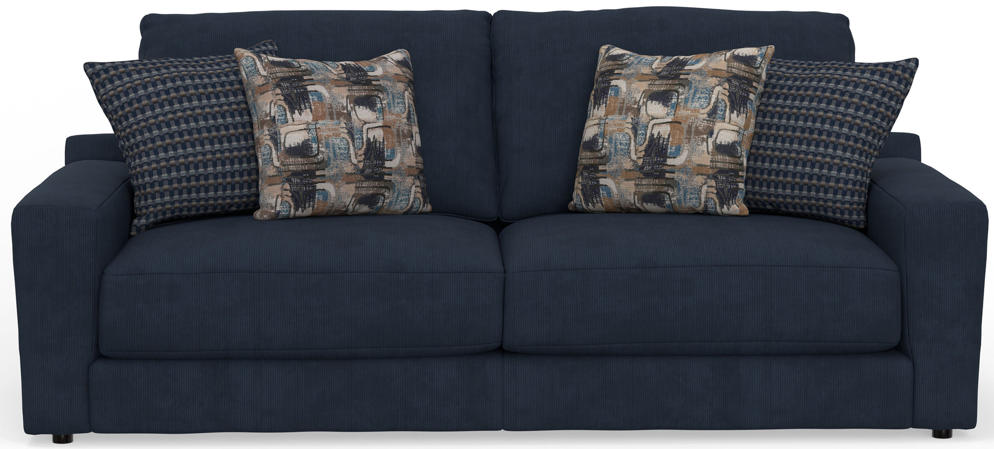 Milo is a modern track arm design in a soft polyster pincord fabric. This large scale sofa group features our deep seating Cuddler Cushion for ulitmate comfort. Product Features Modern Track Arm Design Soft Polyester Pincord Fabric Correlating Pillow Package Steel Tech Framing Cuddler Cushion for Ultimate Comfort Coil Spring Seating